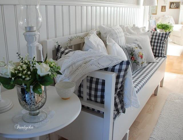 Nakolko som decko z dediny :) tak milujem vsetko, co zavana dedinskym prostredim. Vyrastala som vo velkom starom dome, v ktorom sa vo vzduchu vznasala jemna vona vanilky a orechovych kolacov, ktory bol citit cerstvo popilenym drevom a lestidlom na parkety , kde nas rano budili kotkodakanim sliepky a vecer uspavalo vyhravanie cvrckov. Kredence boli plne porcelanovych riadov po prababickach, na policiach sa hromadili vazicky, kvetinace, obrazky a ine milene serepeticky, almary praskali od mnozstva podedenych krajkovych obrusov, lanovych obliecok a kazda izba bola napchata predmetmi, ktore si niesli svoju spomienkovu hodnotu. Preto sa dodnes rada obklopujem vecami, milujem farby, vzory, ozdoby a ozdobky a mojim zivotom je heslo “Menej nikdy nie je viac” :D skratka si takto taham stale svoje detstvo so sebou. Minimalizmus je pre mna smrrrrrt :D Mam skveleho muza, ktory mi nechava absolutnu volnost pri zariadovani a paci sa mu vsetko, co urobim, takze ma moja fantazia slobodny rozlet :) Chceme tento rok kupit dom, ktory ma opat prenesie do mojho detstva, tak zodpovedne vyberam, planujem, rozmiestnujem, kreslim a robim nakupne zoznamy. Nas dom nebude nic pre milovnikov jednoduchej elegancie, minimalizmu ci skandinavskej strohosti, bude mixom chuti, farieb, tvarov, spomienok a lasky :)