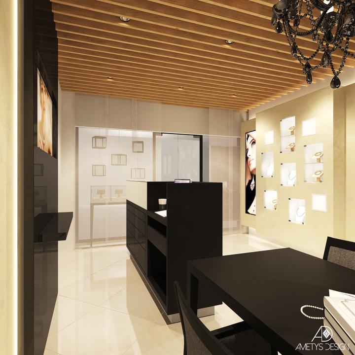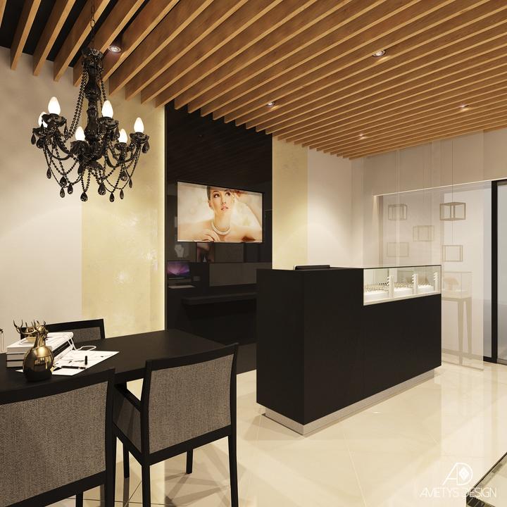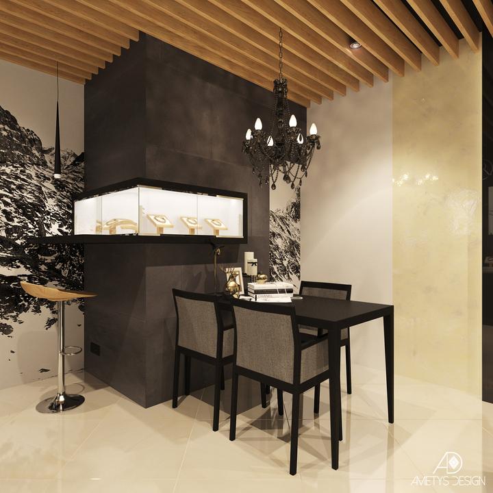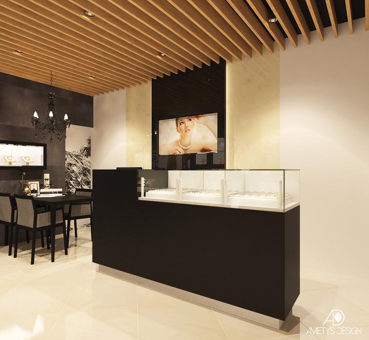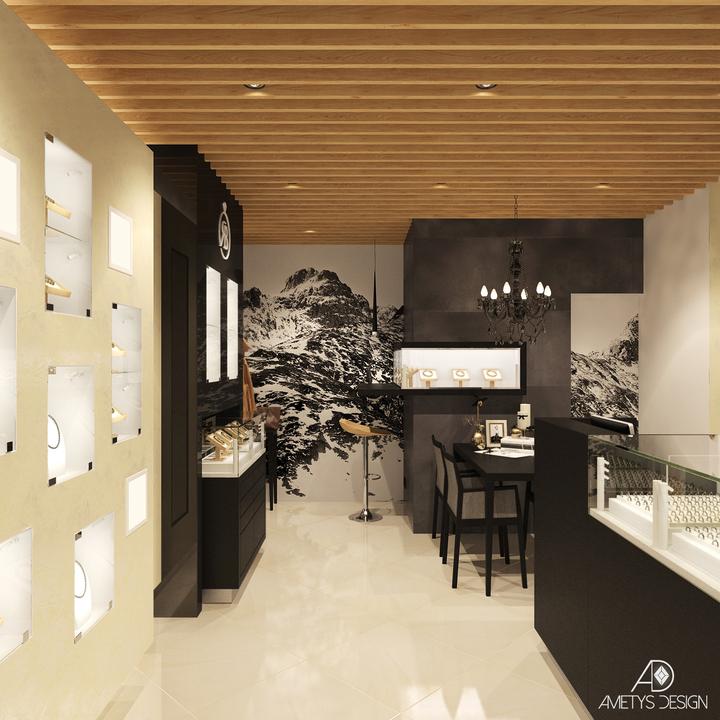 Náš súčasný návrh a vizualizácie sa týkajú interiéru predajne zlatníctva pod Tatrami. Našim zámerom bolo, aby daný interiér pôsobil moderne a štýlovo. Základné farby, čiernu, bielu, sivú a béžovú, sme kombinovali s prírodnými prvkami dreva a kameňa.…