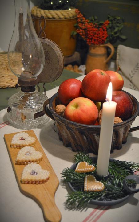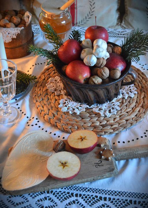 Milujem Vianoce a adventné obdobie...síce mám akosi menej a menej času pred Vianocami, ale výzdoba musí byť, skôr či neskôr...jablká, orechy, červená farba, vetvičky, starinky to je to čo mám rada. Dekorujem z toho čo mám doma, nekupujem žiadne ozdo…