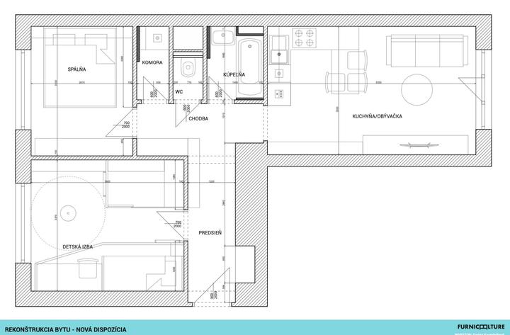 Náš 54 m2 bytík sme potrebovali upraviť tak, aby sa doň zmestila detská izba. Je to tehlový dom blízko centra Košíc medzi dvoma parkami, kvôli lokalite sme sa nechceli sťahovať. Pretože sme vedeli, že každý meter štvorcový sa počíta, najali sme inte…