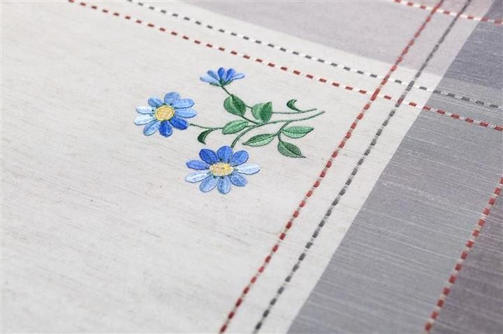 Ďalšou novinkou sú krásne kárované obrusy s jemnou kvetinovou výšivkou. Potešia domácnosti s naturálnejším prostredím alebo chaty a chalupy.