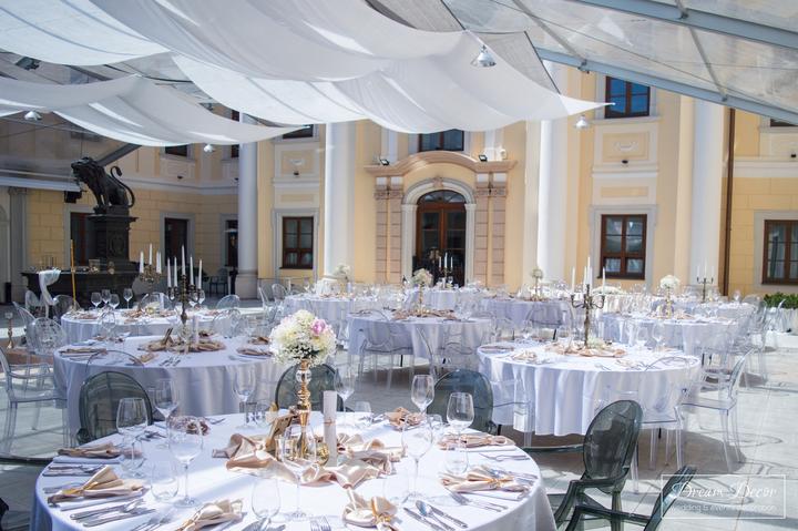 Svadobná výzdoba barokového kaštieľa Theresia Chateau v Bernolákove.