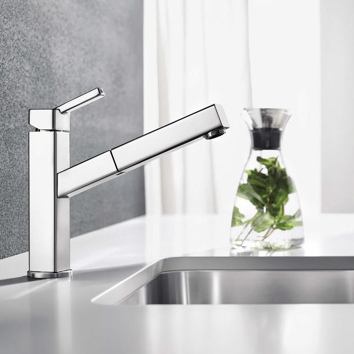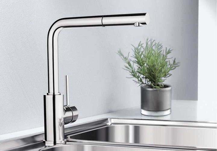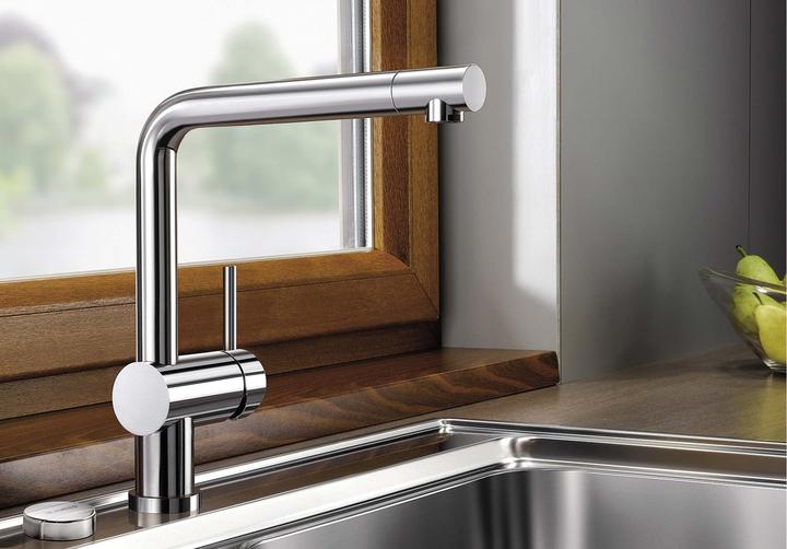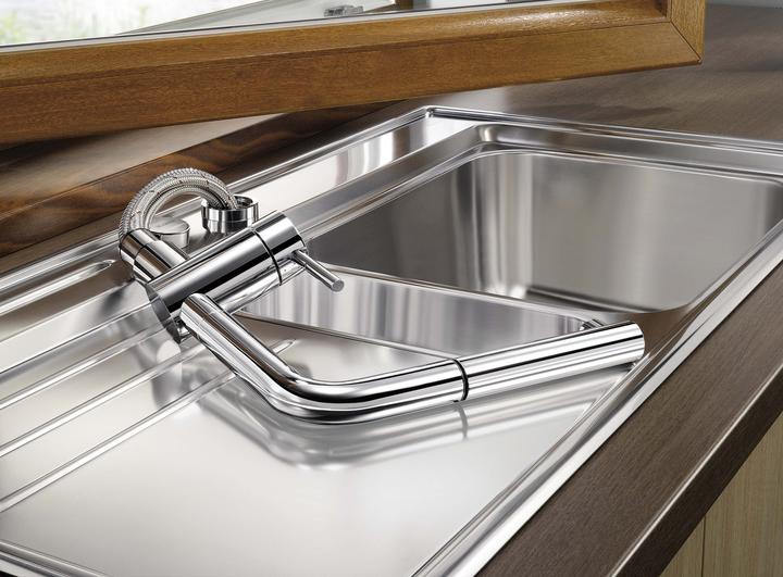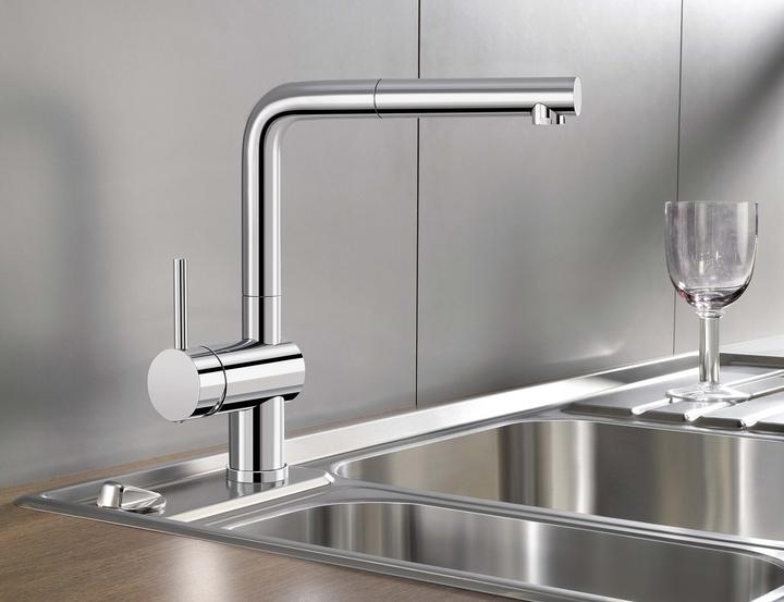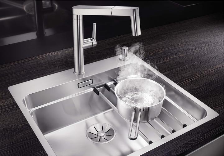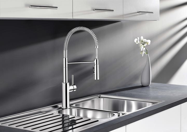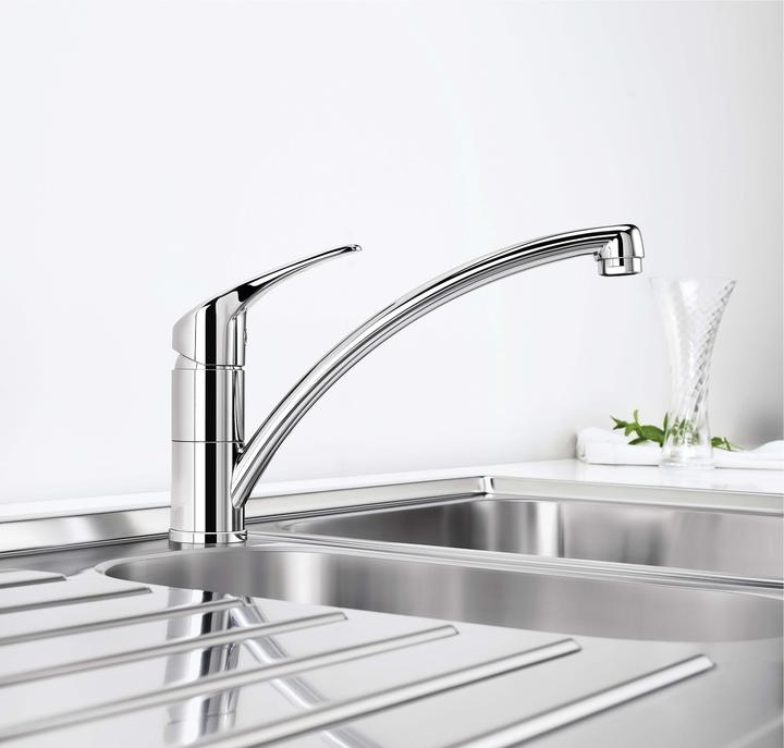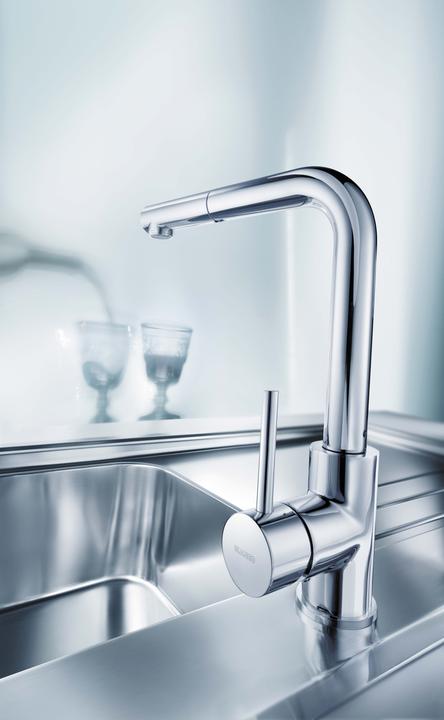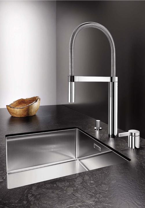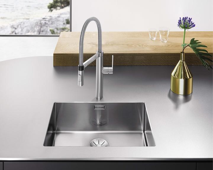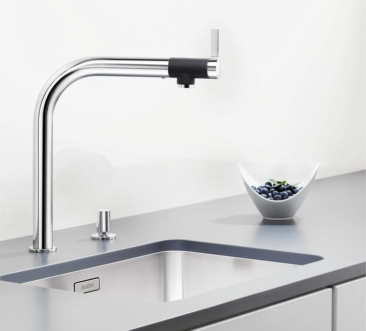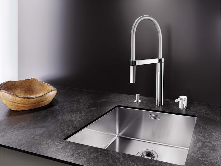 Metalické batérie Blanco s chrómovým alebo nerezovým povrchom sú univerzálnym riešením k nerezovým, granitovým aj keramickým drezom.