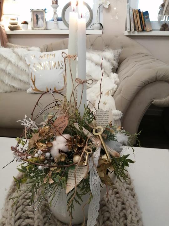 Moja tvorba... zbožňujem toto obdobie🤍🎄🎀... aranžmánik vytvorený ako sada k adventnému u venčeku