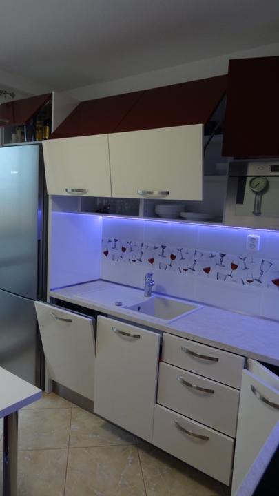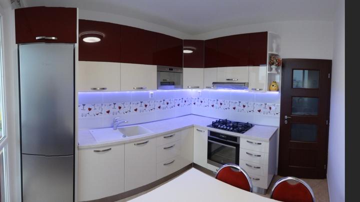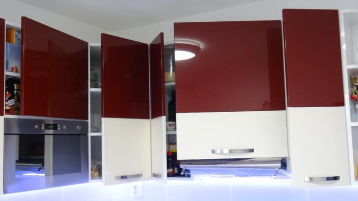 Zámer bol jasný - vytvoriť funkčnú kuchyňu vo farbe bordó, znázorňujúcu vášeň majiteľa k dobrému vínu, ktorá aj v tme má svoje čaro vďaka LED podsvieteniu