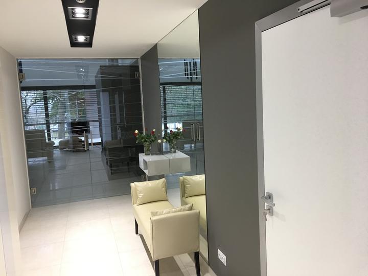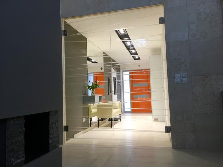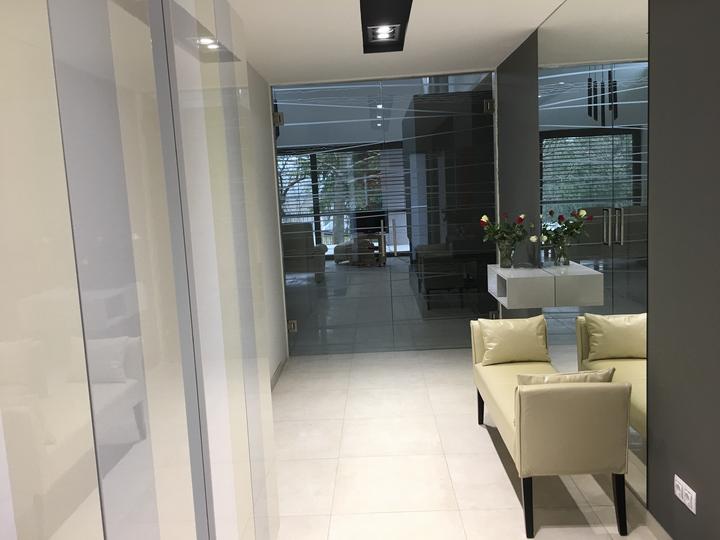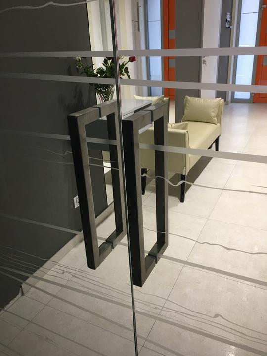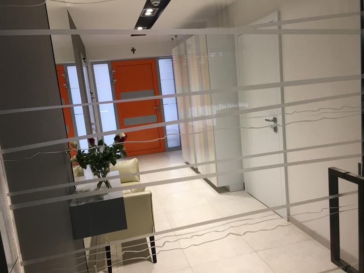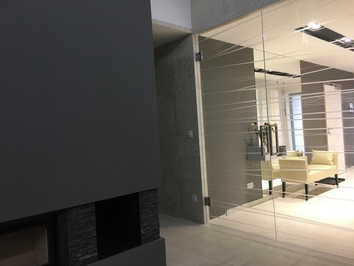 Biely krb sme premalovali na sedo a nainstalovali sme sklene SAP dvere medzi obyvackou a chodbou