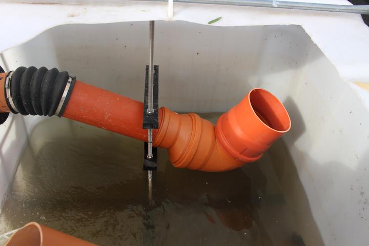 Vertikálny filter KČOV je zavlažovaný cyklicky cez dávkovaciu šachtu. Ukážka domácej výroby
