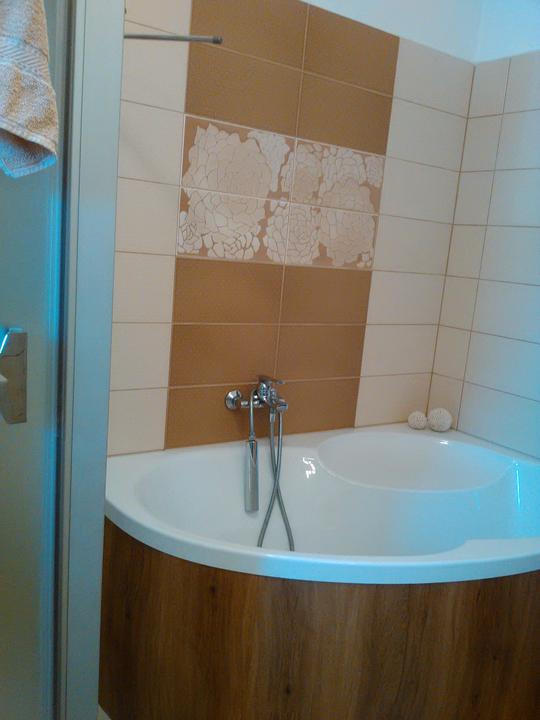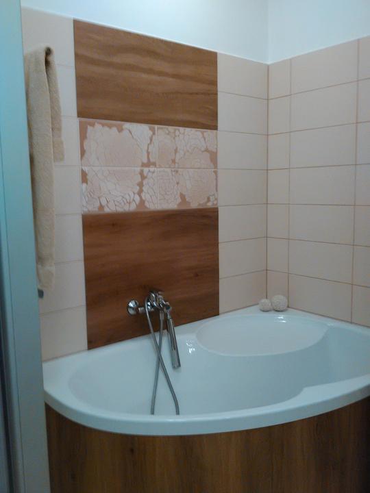 Pocas nasej par dnovej nepritomnosti nabehne murar a podla instrukcii a pri stav.dozore dcer pekne vanu obmuruje. To bude prekvapenie :). Potom pojde na to nalepit vinyl dekor dub. Este nejake detailiky sa doladia a bude kupelna tip top.