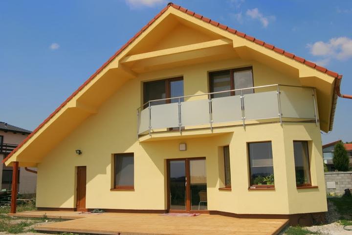 Použité materiály: obvodové múry YTONG 375mm + 70mm izolácia z minerálnej vlny, strecha Mediterran, omietka Weber, okná plastové Salamander, interiérové dvere LipBled, krbová vložka KV1 H ROH s výsuvnými dvierkami do hora, prízemie okrem hosťovskej izby dlažba, ostatné miestnosti laminátová podlaha
