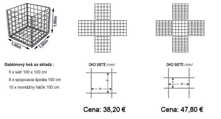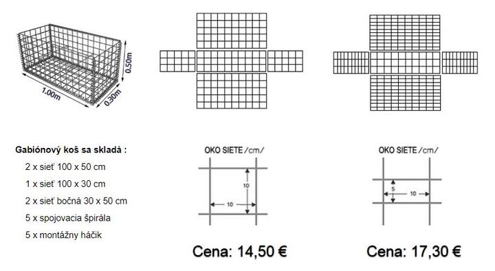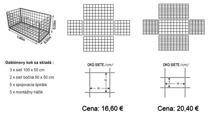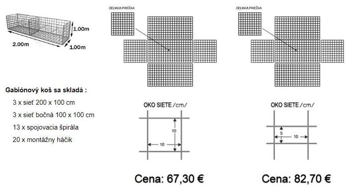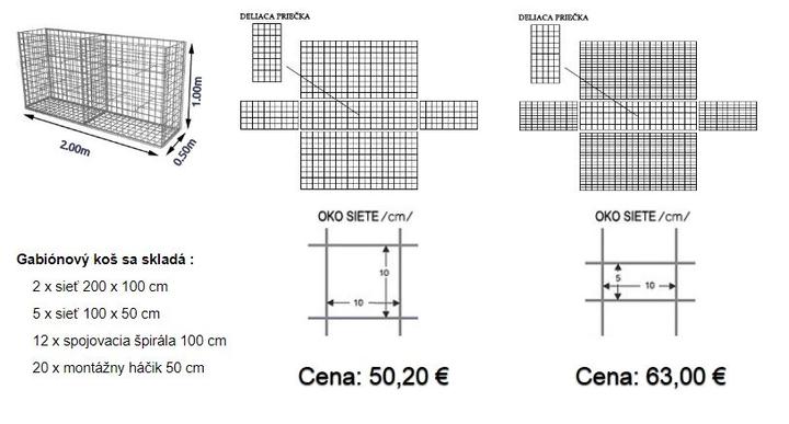 Cena gabionových košov je bez vrchného výka, nakoľko pri ukladaní gabiónov na seba, tvorí dno vrchného gabiónu, výko spodného.