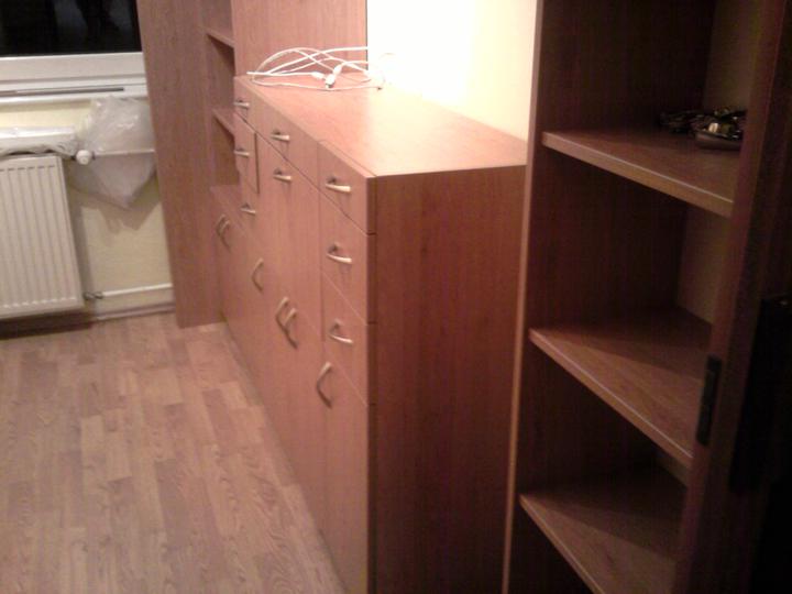 vstavana skrina, knihovnice, polica a komoda su z firmy RM Plus : bolo zopar reklamacii, napr.kratsia polica, krivo osadene dvierka, nezarovnane spodne skrinky... ale celkovo som spokojna...dobra cena, rychle vybavenie reklamacie