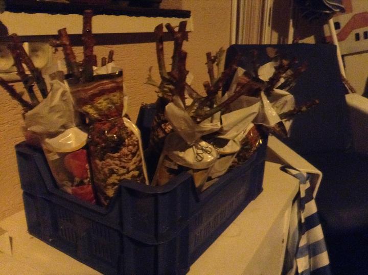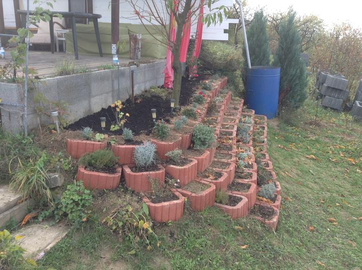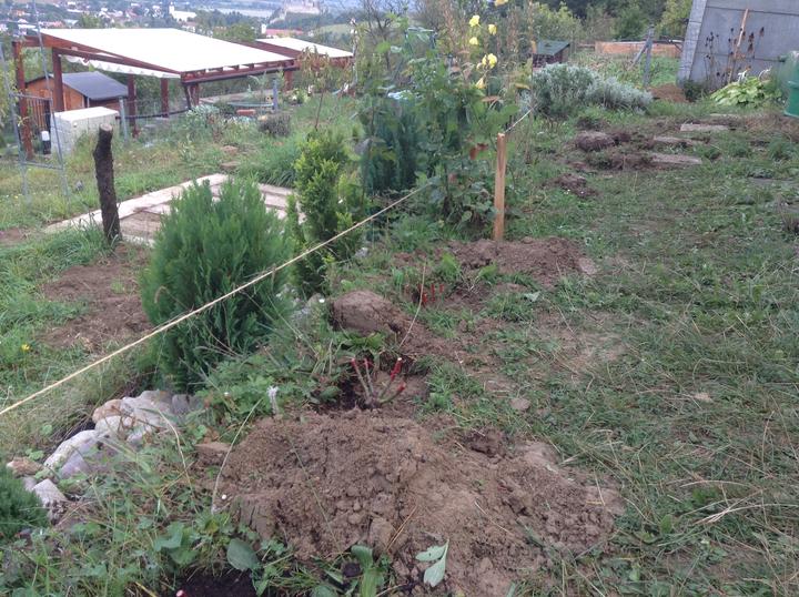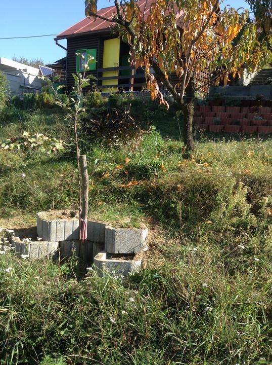 15.10.2016 nakúpených a posadených 10 stromkov - čerešňa Karešova, hrušky WIliams a Lucasova, jablká Sirius a Rubinola, slivky Stanley a Katinka, zelená ringlota, marhuľa Maďarská, broskyňa Redhaven - ďalej dve drienky Jolico, lieska Webova. Ríbezle TItania a čosi van Tets, žltý egreš, malinoostružina a malinočernica.. Jahody Mara de bois.