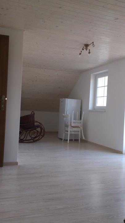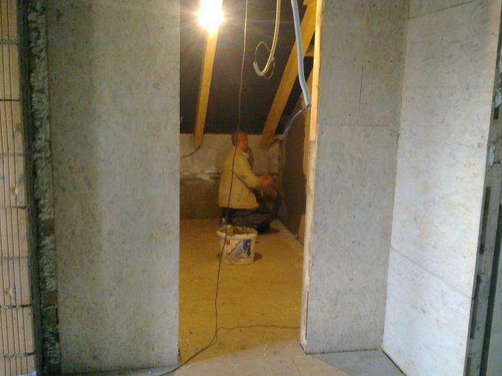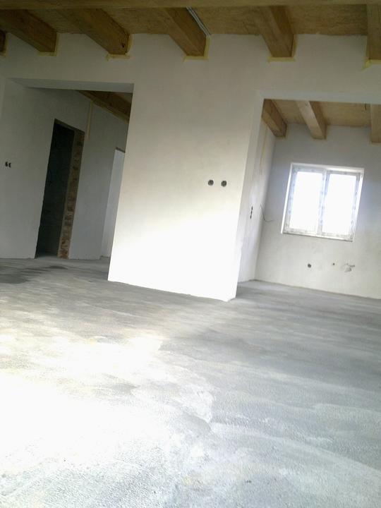 máj 2012 - betónové potery na prízemí a drevený obklad v podkroví