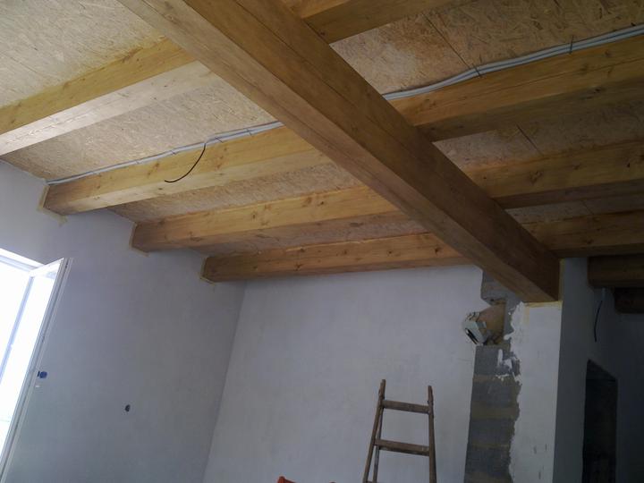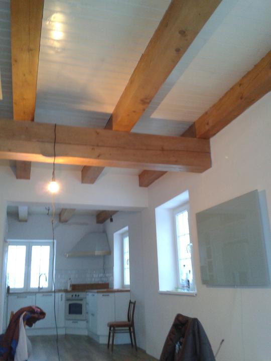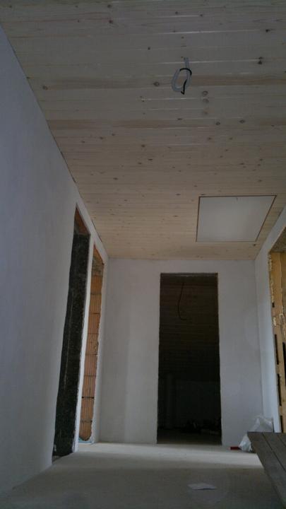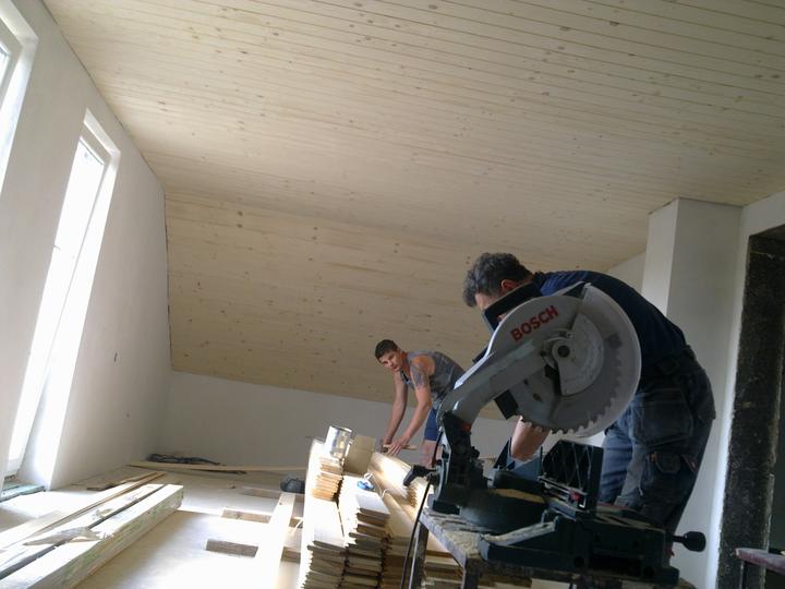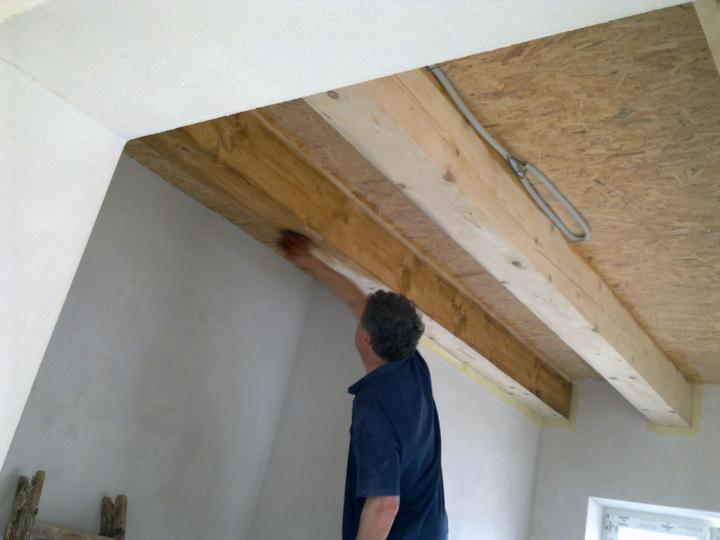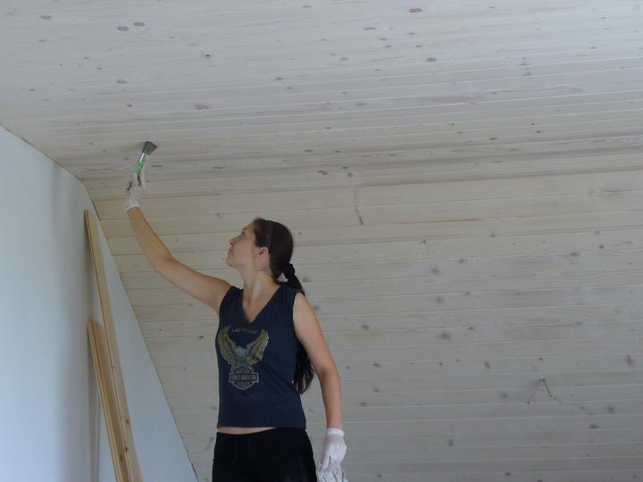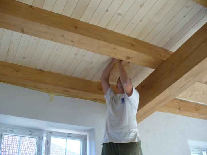 jún 2012 - natierame luxolom stropy na poschodí. zároveň podbíjame na prízemí medzi hradami. nevieme nájsť vhodný náter na drevo ........
