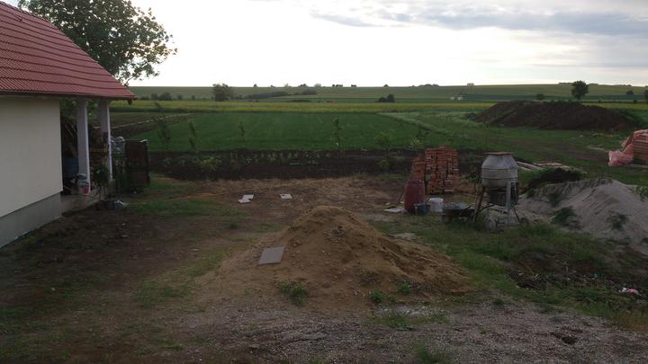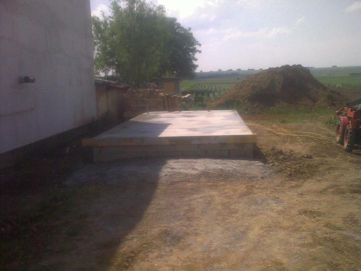 máj 2011 - žumpa hotová, voda zapojená, základy terasy a garáže sú zaliate
