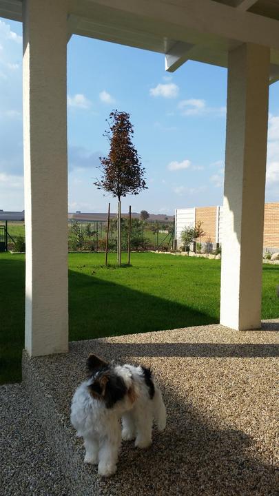 júl 2014- pribudla strecha nad terasou a travnik