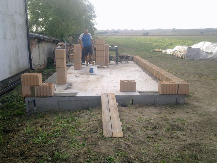 júl 2011 - vymurovali sme nosné múry, zalievali veniec a preklady