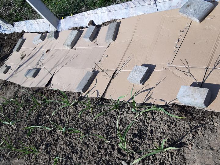 Plot vtáčí zob. Zamulčované kartónmi.
