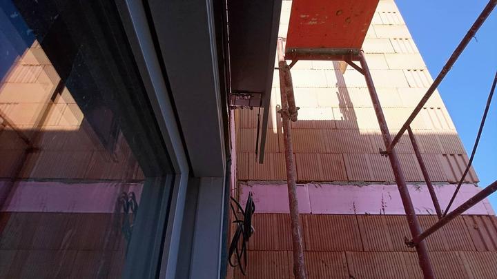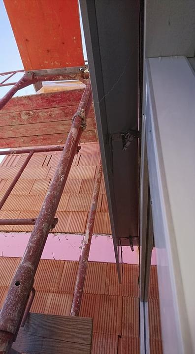 Po konzultácii sa rozhodol investor všetky nevyhovujúce krycie plechy demontovať. Namontovali sme tam pevné obojstranné krycie plechy s povrchovou úpravou RAL s bočnicami, masívne konzoly a dodali sme zatepľovacie polystyrény s vodiacim U-profilom pre osadenie vodiacich líšt do zateplenia. Informovali sme investora, že doba pokročila a už dávno sa polystyrény nevyrezávajú na stavbe pre osadenie vodiacich líšt do zateplenia. Originálne stavebné prvky, ktoré dodávame pre zateplenie už množstvo rokov, sú spracované precízne a výsledný efekt je podstatne na vyššej úrovni.