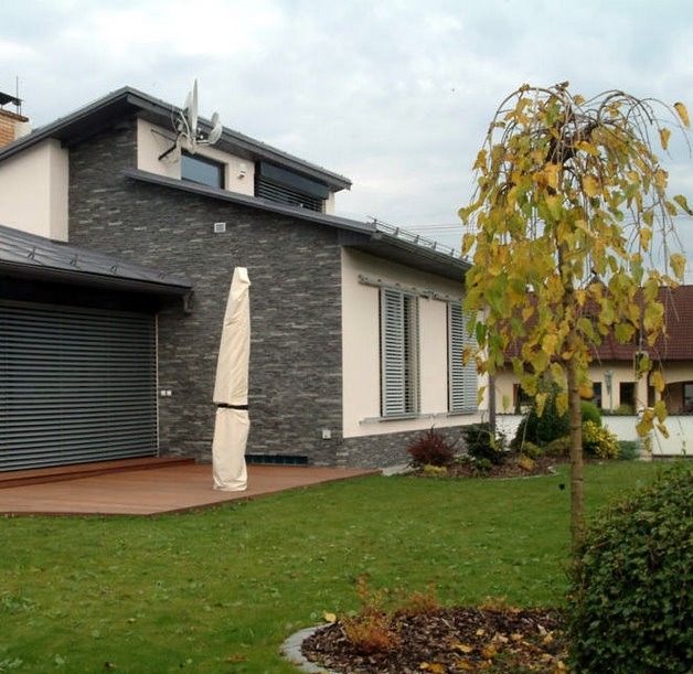 Návrh fasád kameň/drevo