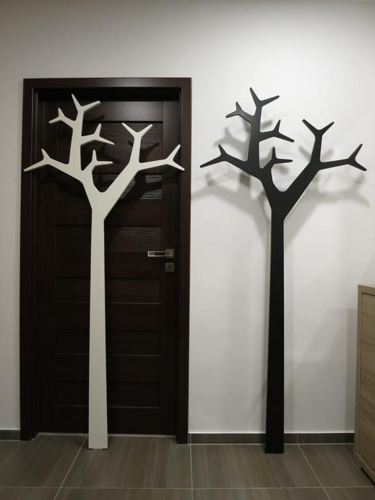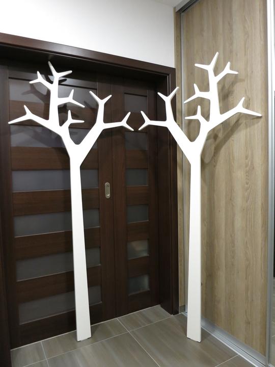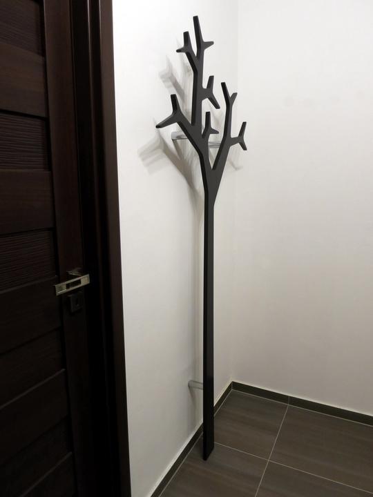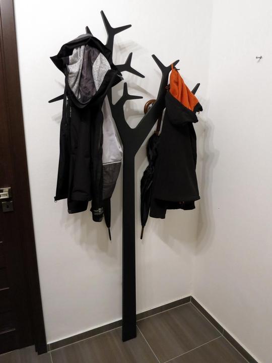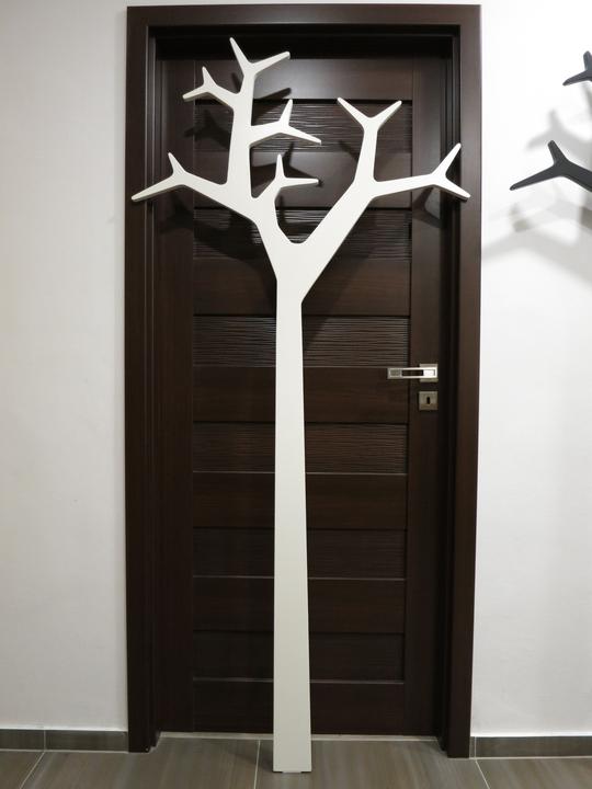 Rekontruovali sme byt a menime aj nabytok v chodbe a namiesto obycajnych hacikov som chcel nieco zaujmavejsie. Prezrel som na internete dizajnove vesiaky a zaujal ma jeden v tvare stromu ktory sa montuje konzolami o stenu. Kedze radsej veci vyrabam a toto bol idealny kandidat tak som sa pustil do toho. :-) Material je surova MDF doska 18mm. Vedel som kupit len celu platnu 2,8x2m tak som ju vyuzil celu a robil som vesiakov priamo viac naraz. Vyrezavane a brusene to bolo komplet rucne, bola to piplacka a zabralo to dost casu kedze je to pomerne zlozity tvar. Ale so spravnym naradim a zakladnymi znalostami s pracou s drevom to slo a s vysledkom som spokojny.
