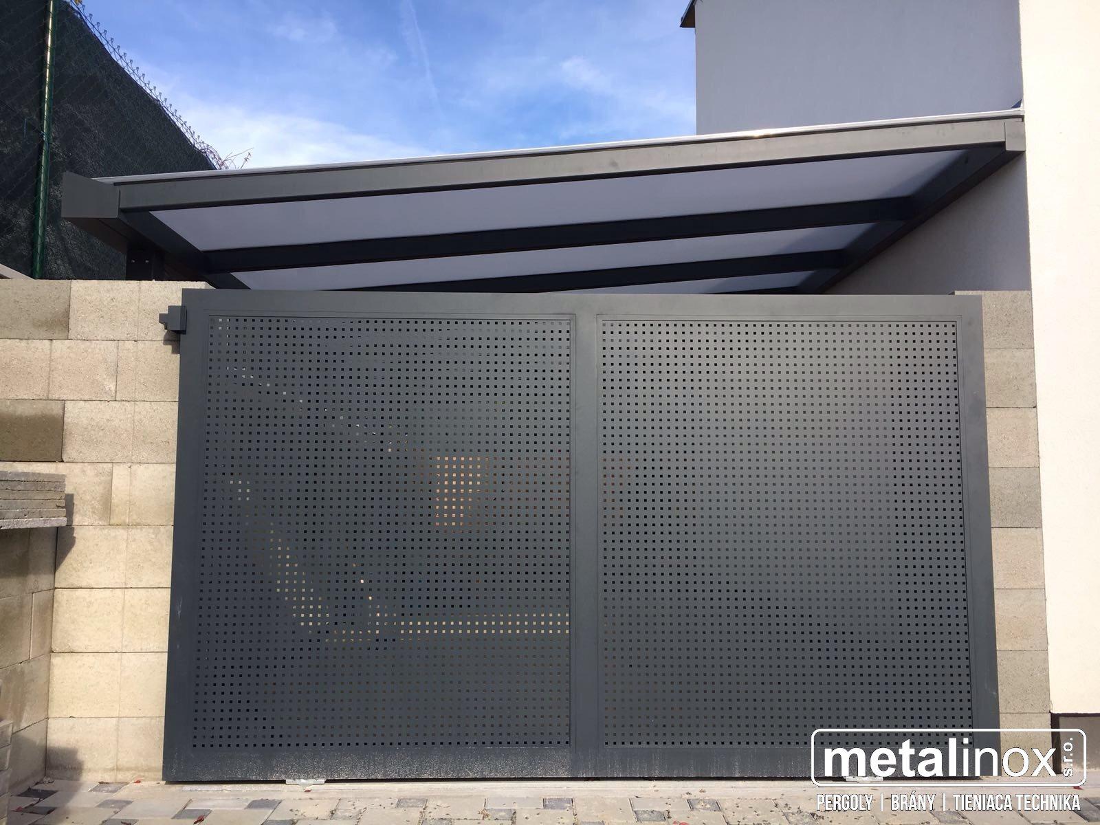 Hliníková brána + oceľový prístrešok