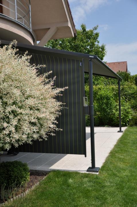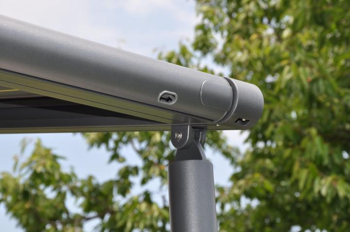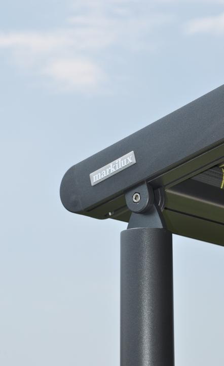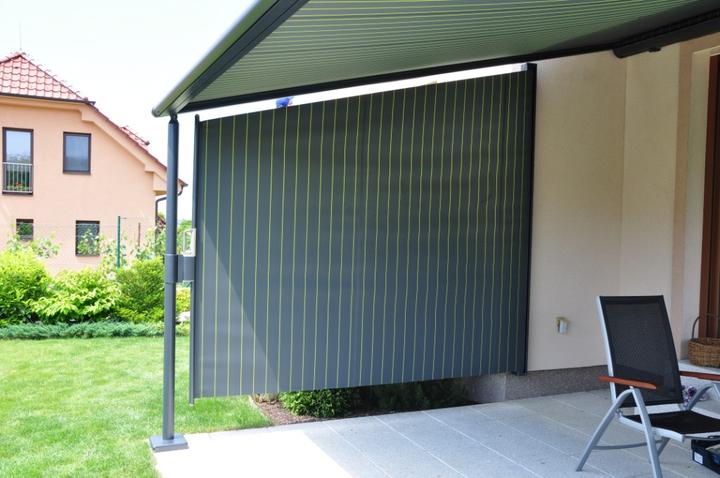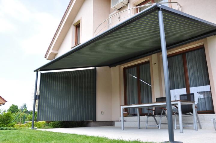 od nemeckého výrobcu Markilux bolo zvolené predovšetkým z dôvodu nedostatočného priestoru medzi hornou hranou okenného ostenia a balkónovou doskou. V prípade použitia zhrňovacej clony by totiž doc…