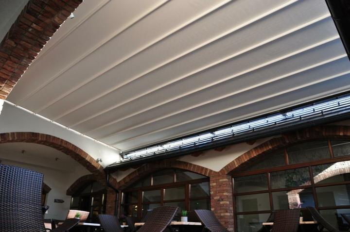 Prestrešenie átria Reštaurácie Pútnický mlyn v Marianke bola ďalším atypickým riešením, ktoré si vyžiadal jestvujúci stav. Riešením bolo použitie časti konštrukcie pergolovej clony Pergotenda Corradi PT 45, bez čelných nosných stĺpov. Konštrukcia j…