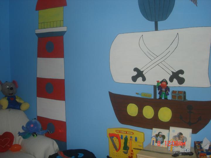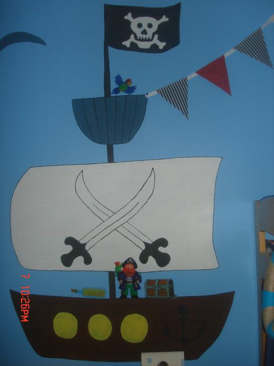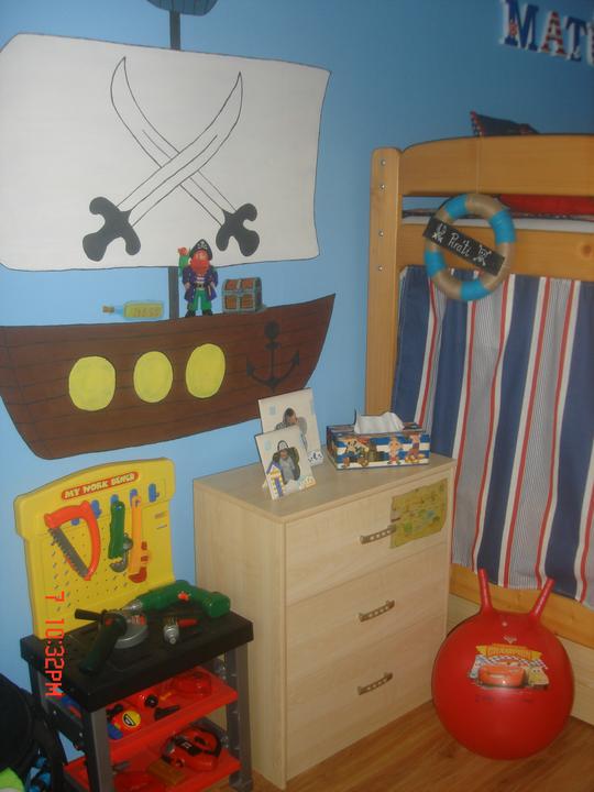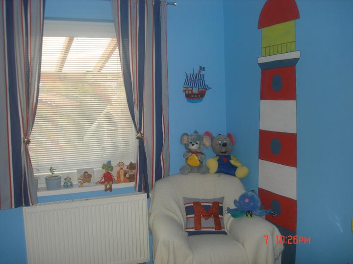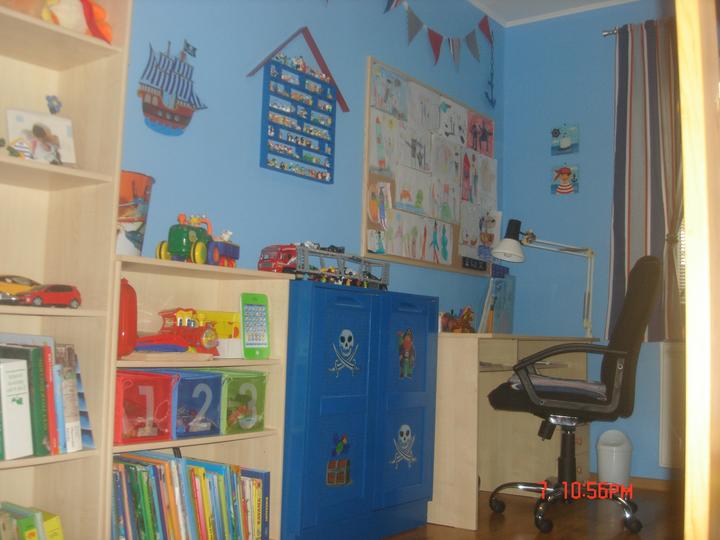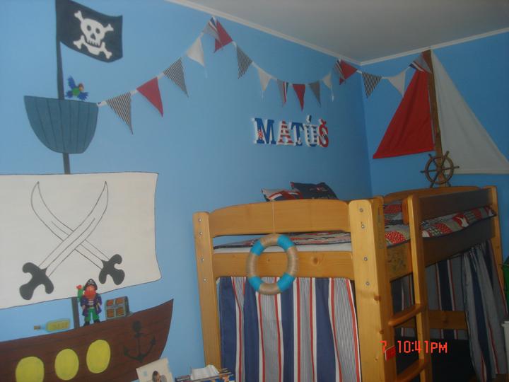 Náš najmenší má konečne svoju izbu. Keďže piráti sú jeho srdcovka, čerpala som námety na MS a skombinovala pirátsko námornícke inšpirácie, a toto je výsledok.
