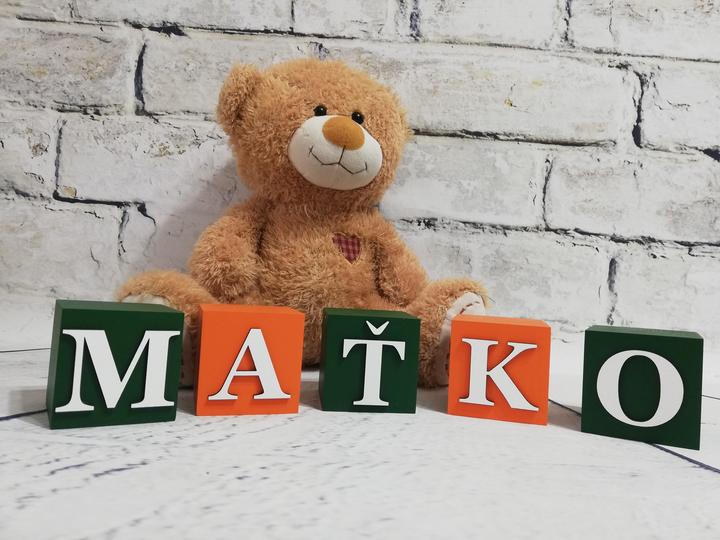 Drevené farebné kocky s písmenami. Vyskladajte si meno dieťatka alebo rôzne nápisy...
