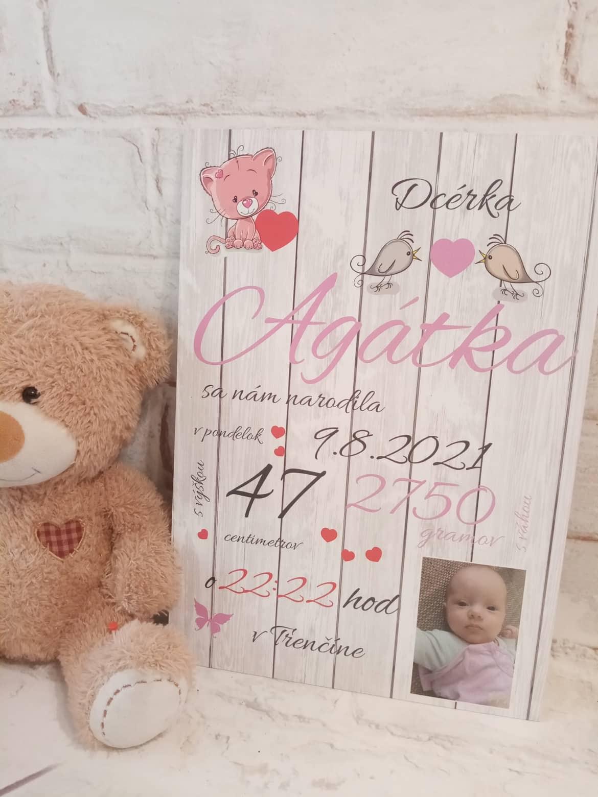 Tabuľka s foto a s údajmi dieťaťa