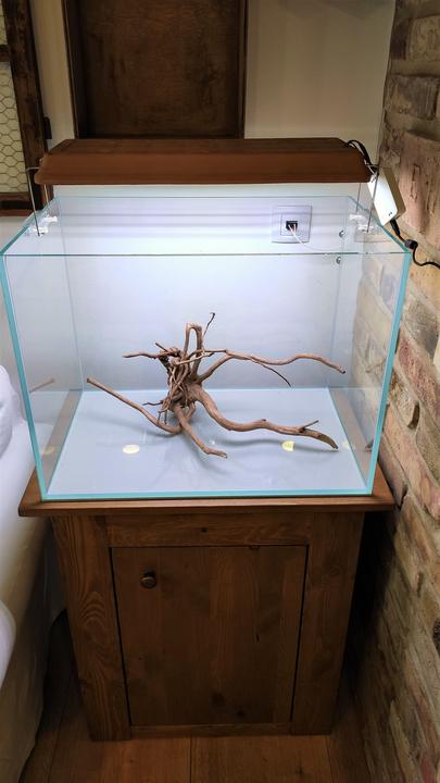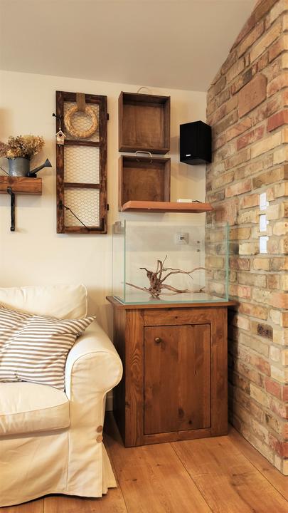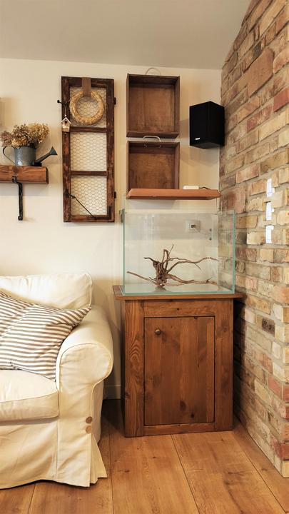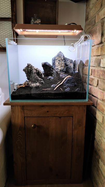 ukecal ma ten môj muž. ukecal ma na akvárium v dome, tak som súhlasila, ale chcela som, aby to zapasovalo k nášmu štýlu v obývačke, vyrobil skrinku, natrela som na dub a teda aj svetlo vyrobil, šak nech teda k tehlám sedí :) Aqua v procese zatiaľ