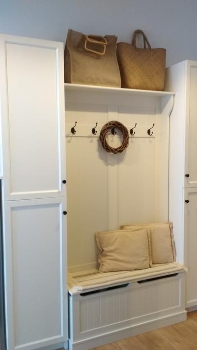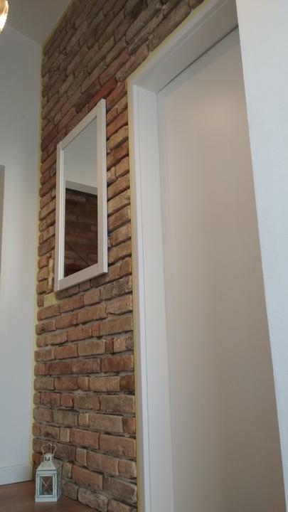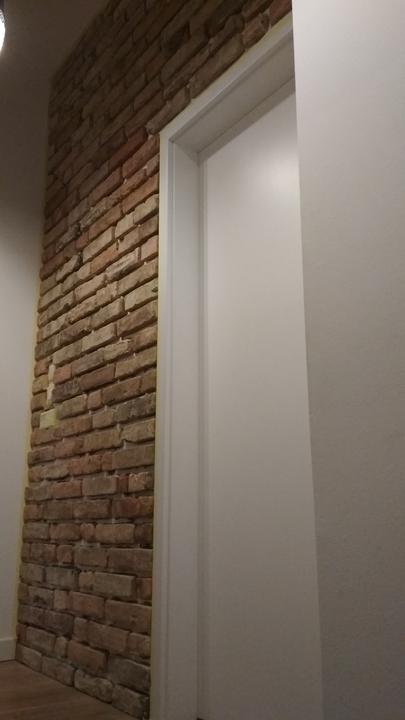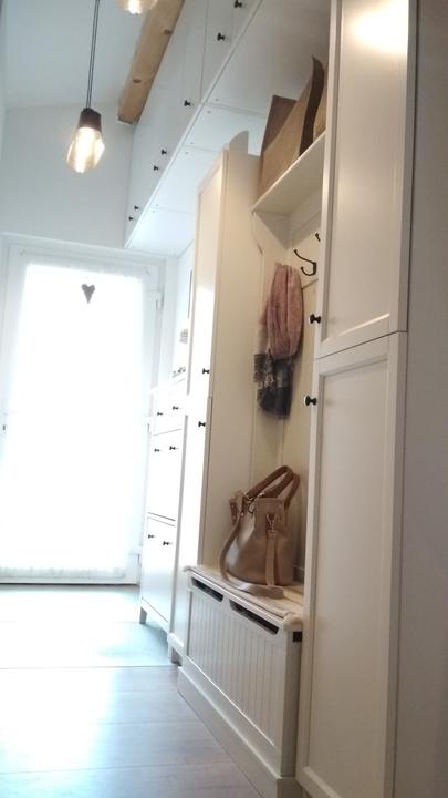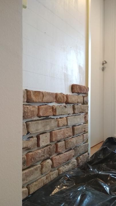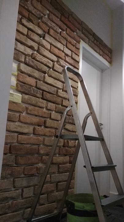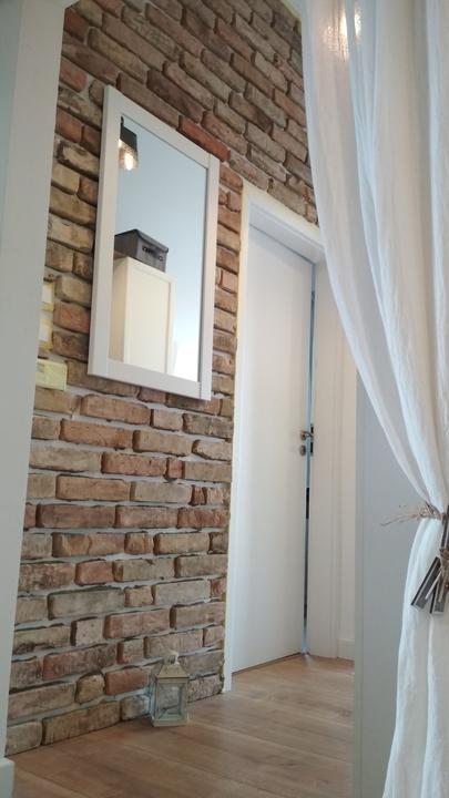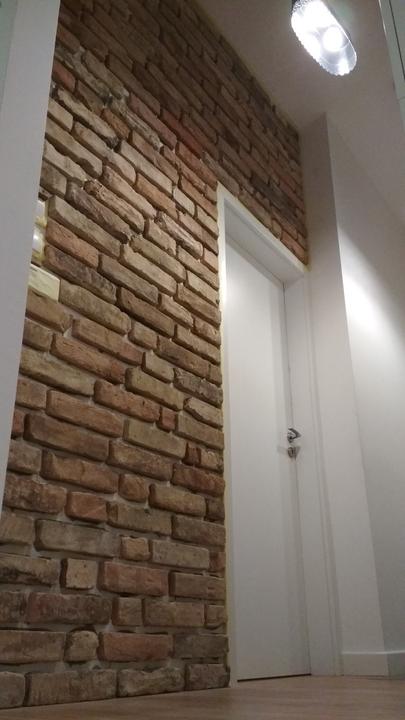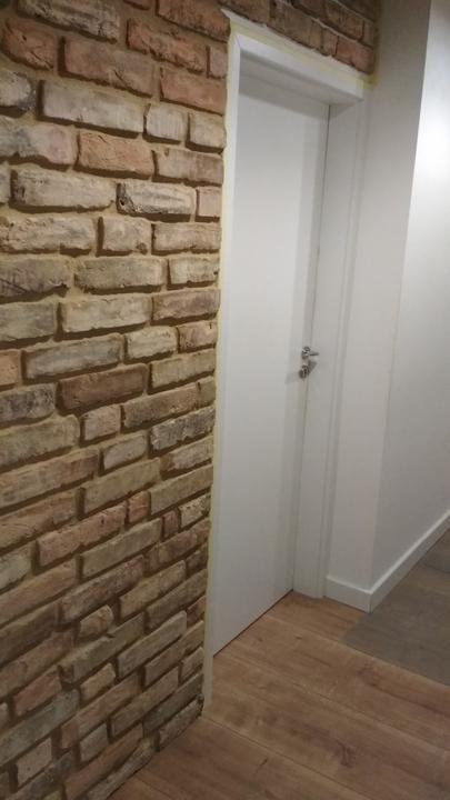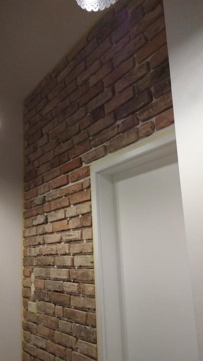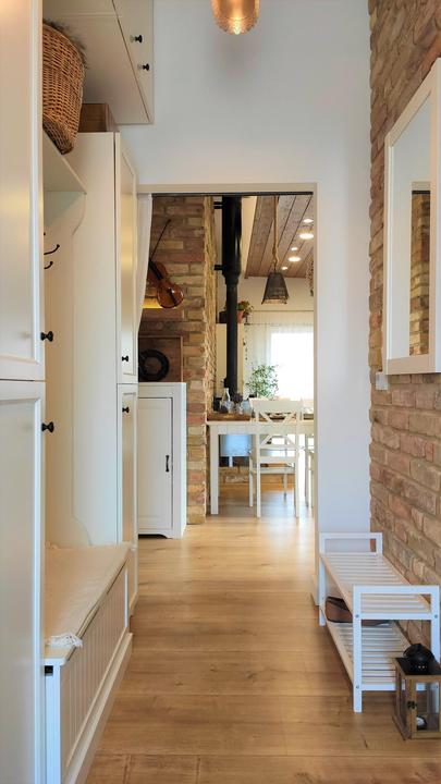 2018 Príliš biela a máme ešte krajný rez starej tehly. Sviatky a voľné dni využijeme a obložíme stenu na chodbe. Policu na topánky sme vymenili za novú skrinku na topánky, oveľa úhľadnejšie a krajšie to je, biela stále ostala, lebo je úzka ale dlhá, no som spokojná so zmenou, nad skrine vysoké dáme rad 80 cm skríň, ukladací priestor sa zíde a stropy máme vysoko 3,30 m. Škoda to nevyužiť