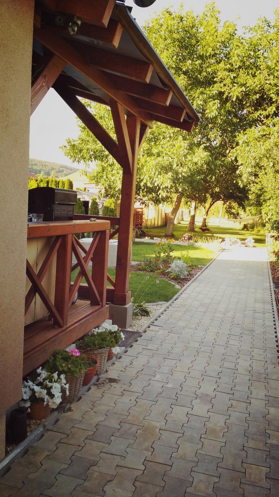 Predný prístrešok nad vstupom do domu, chodníky, plot, brána a bránička ...plány a realizácia