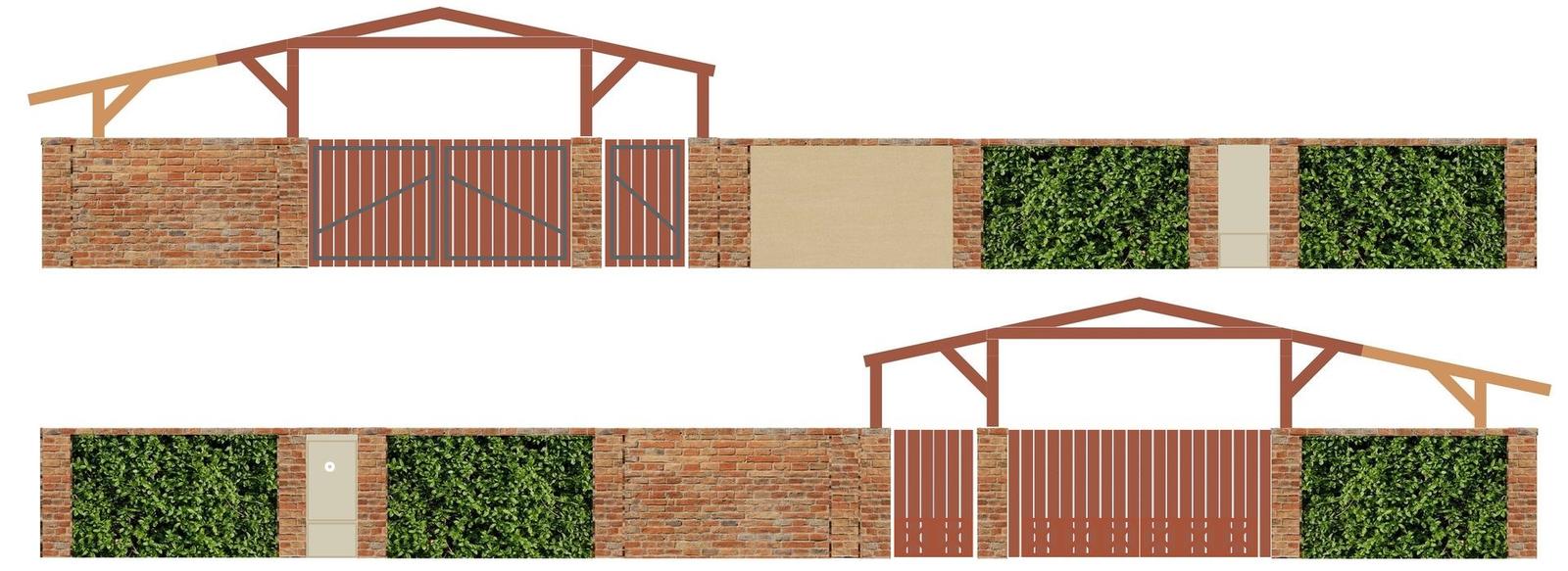 Predný prístrešok nad vstupom do domu, chodníky, plot, brána a bránička ...plány a realizácia