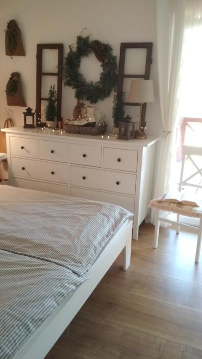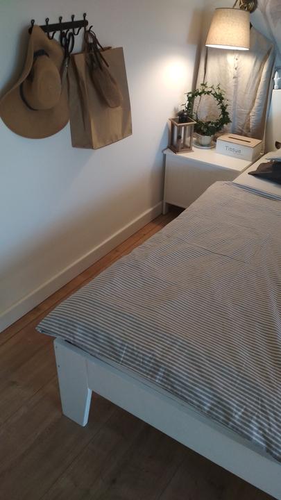 Nedávno som dostala krásne staré masívne a zdravé dvere. Bolo jasné, kam s nimi. Bude nové čelo postele zo starých dverí. Dvere sme spílili na rozmer, aby neboli ani príliš široké ale hlavne ani vysoké. Následne sme hrany zaoblili a prebrúsili do príjemného oblého okraju. Na maľovanie som použila bielu vodou riediteľnú farbu, jednoduchú, ktorá nezapácha a natrela som asi 5 vrstiev, vždy po dôkladnom vyschnutí. Spálňa sa znova zmenila, znova je iná a krajšia :)
