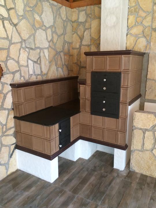 Kachľový sporák s dvojitou rúrou na pečenie