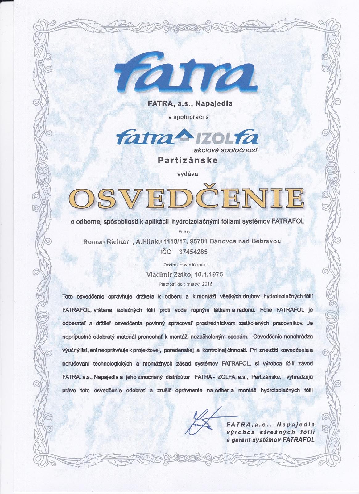 Naše osvedčenia o odbornej spôsobilosti