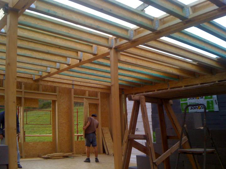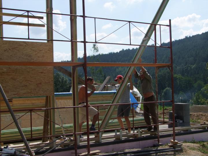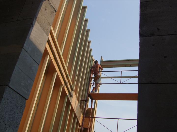 Výroba nosníkov tzv. na kolene, doma, zabrala dlhý čas. Pomaly finišujeme a všetkých 172 nosníkov je čochvíľa hotových. Tak a 10.8. 2012 začíname rásť..........
