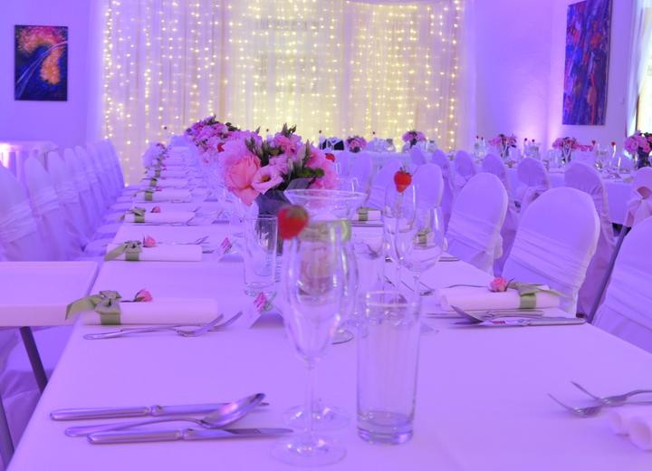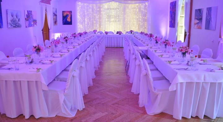 Svadba Kaštieľ Mojmírovce - nasvietenie sály a svetelná stena
