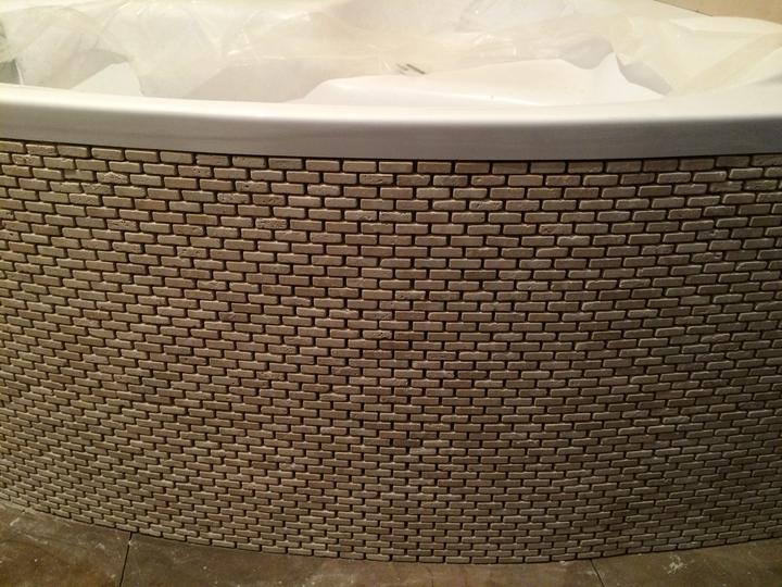Travertínová mozaika v sprchovom kúte a ako obklad vane
