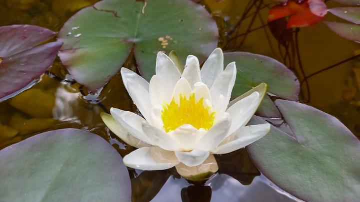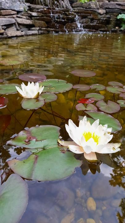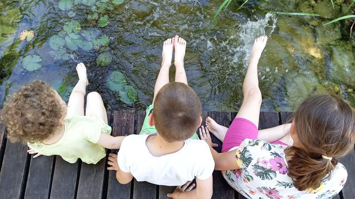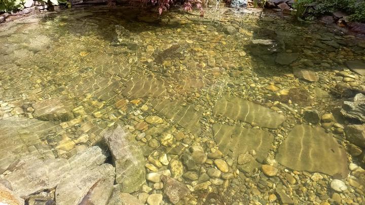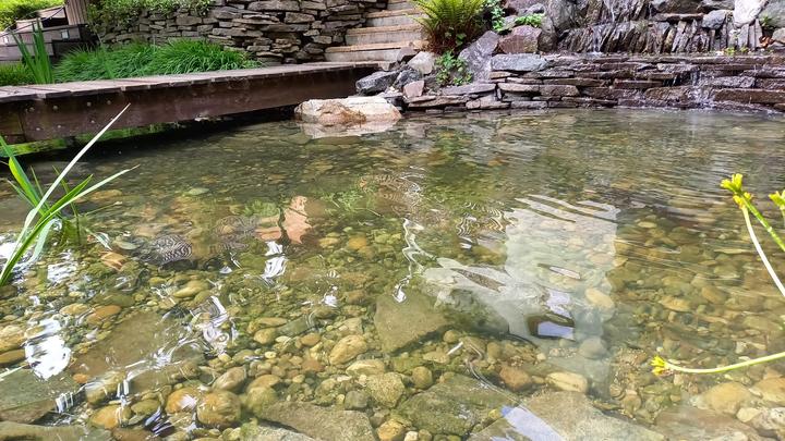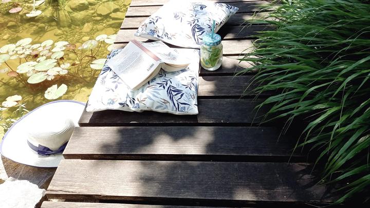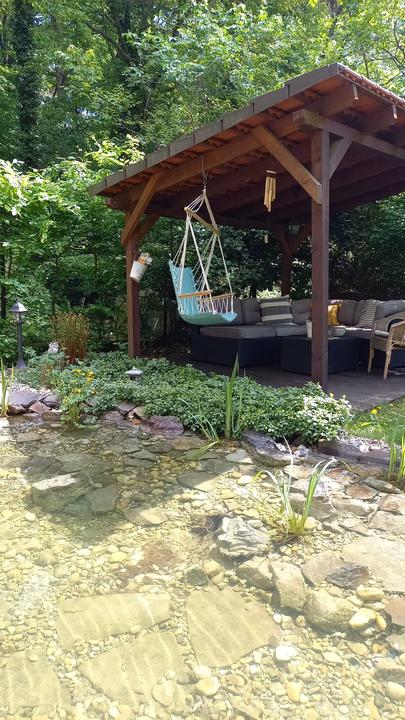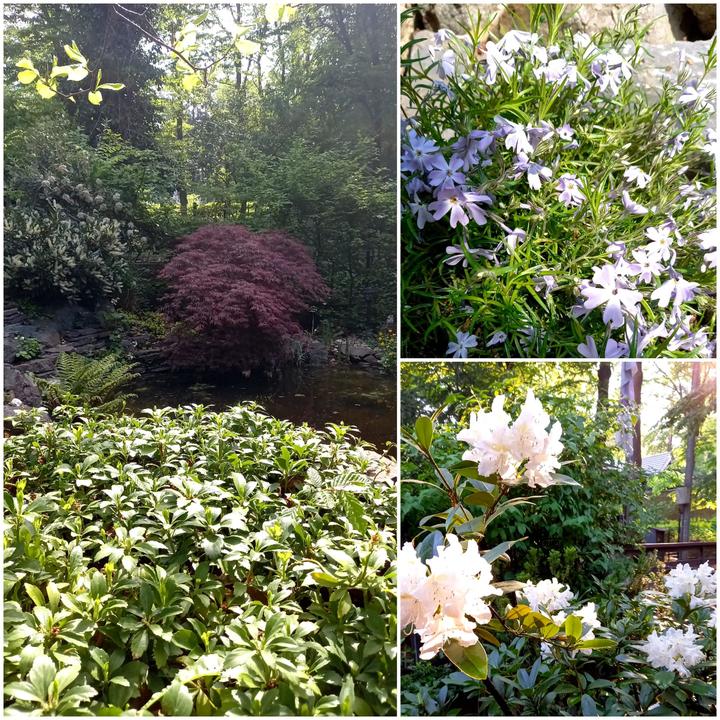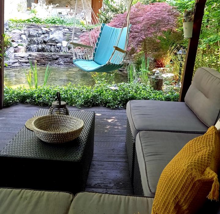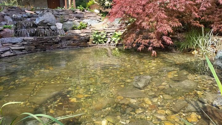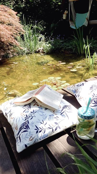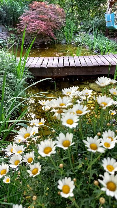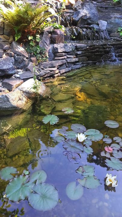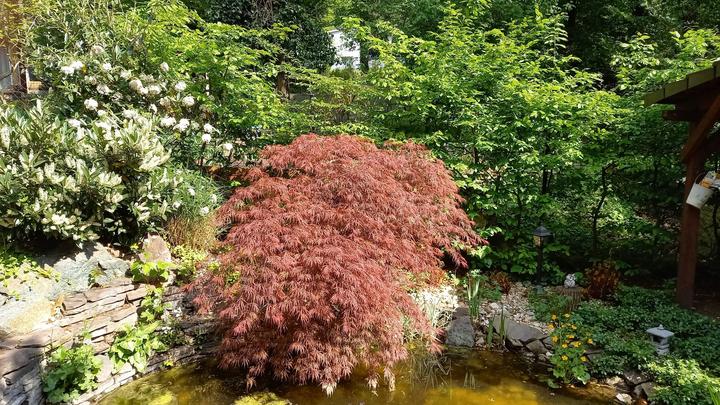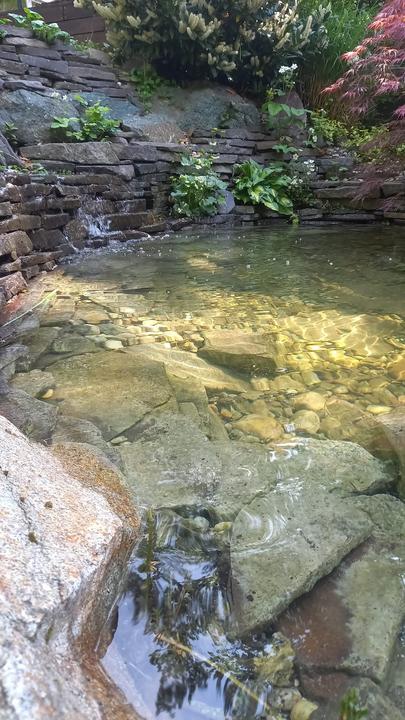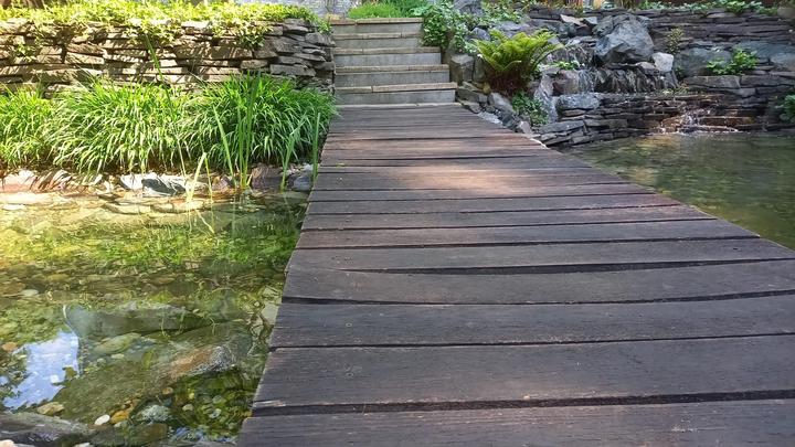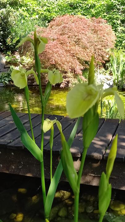 Polotienistá záhradka v zmiešanom lese v svahovom teréne s jazierkom.