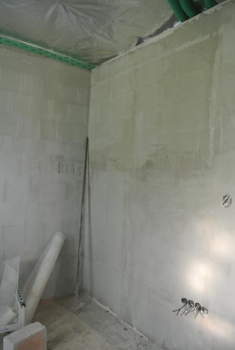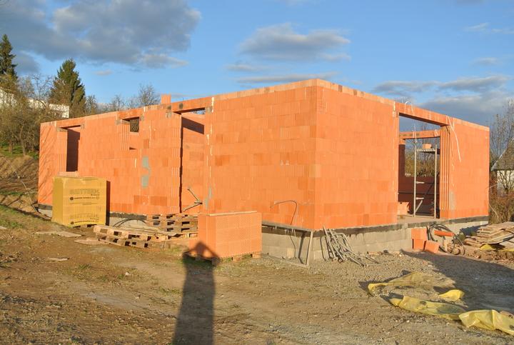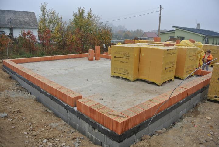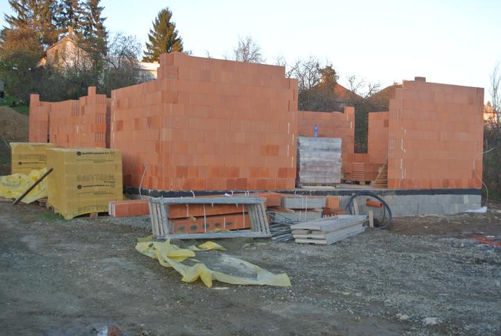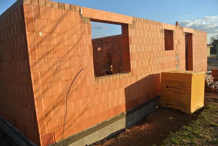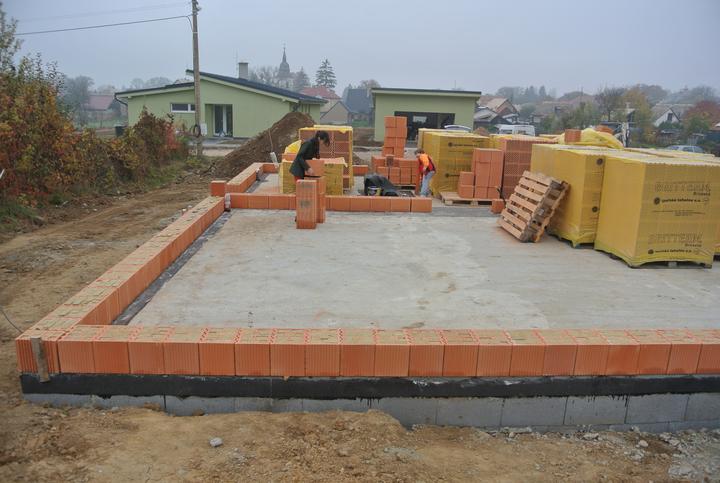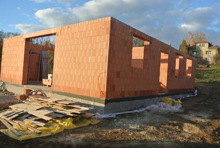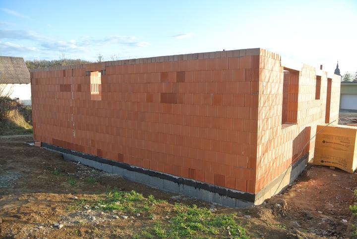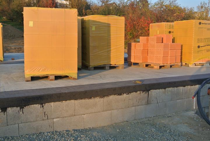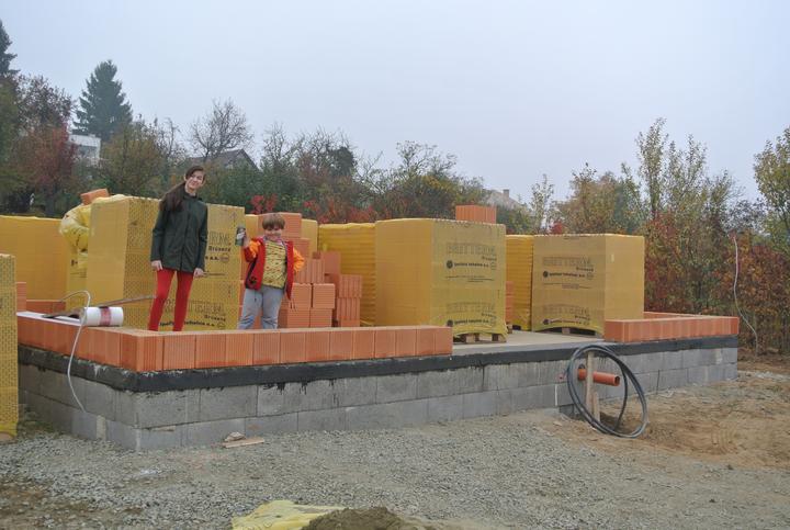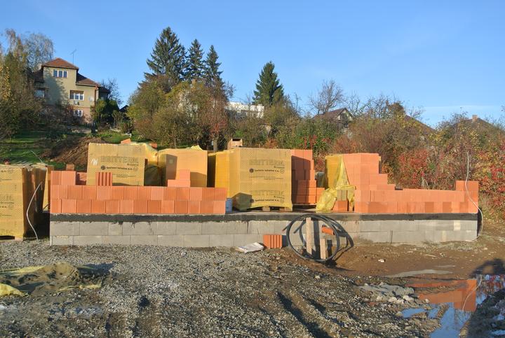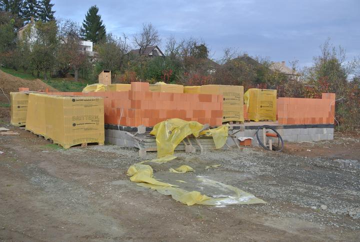 19.10.2017 - začíname murovať, brúsená tehla Britterm, obvodové múra 30cm, stužujúca priečka 25cm.