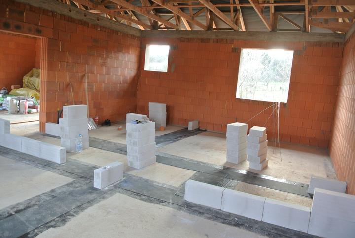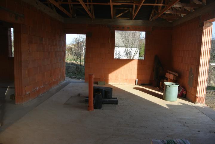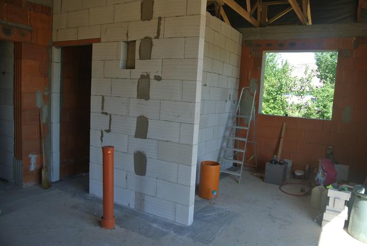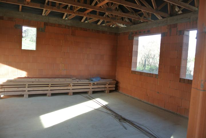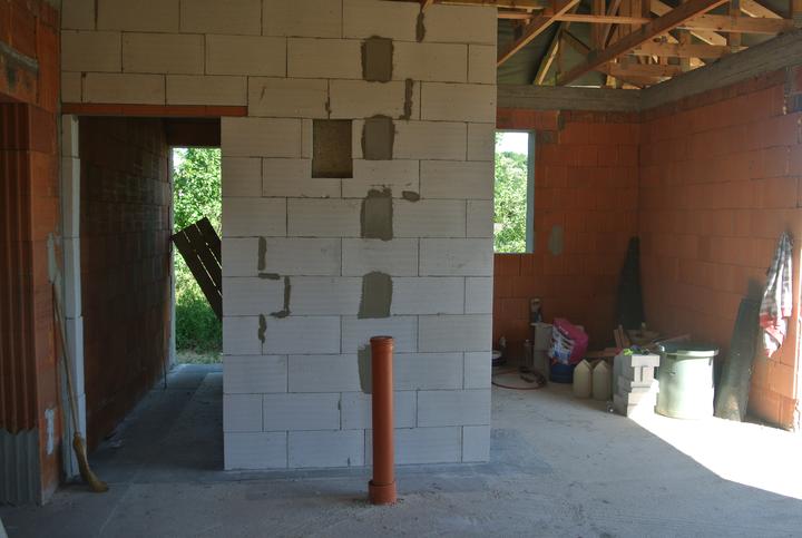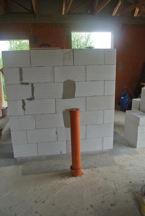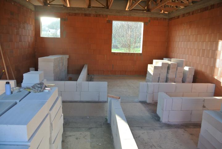 9.4.-11.5.2018 - príprava okenných otvorov na osadenie okien, stavba priečok a komína.