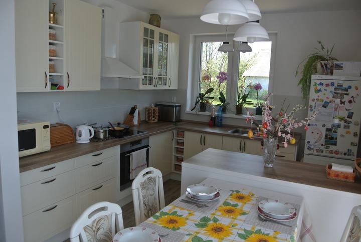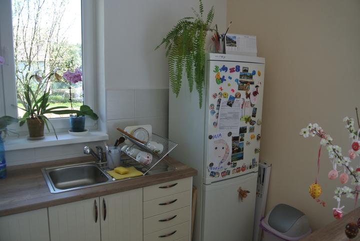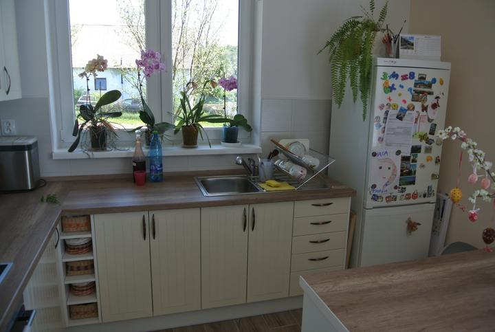 Postupne zariaďujeme a dokončujeme vnútri, čo sa dá. Náš štýl by som nazvala "mierne eklektický", väčšinu nábytku sme priniesli z bytu a nemám potrebu vraziť peniaze do nového nábytku len preto, aby bol nový. Novú sme kúpili len sedačku a kuchyňa prešla značnou premenou, teraz sa z nej teším viac ako keď bola nová (a myslím, že teraz je aj krajšia....). Všetko postupne vyladíme tak, aby sa to páčilo a vyhovovalo nám, a je mi srdečne jedno, aký štýl práve letí. Domov aj tak nerobí nový nábytok a drahé zariadenie, dôležité pre mňa je, aby sme sa v našom domčeku cítili dobre (hoc aj so zariadením, čo nie je in).