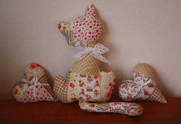 Vecičky šijem doma aby som si vyplnila čas. Plnené su kvalitným dutým vlákom a tak si svoj tvar udržia dlhodobo.Látka je použitá nová - bavlnená. Viem ušiť mačičky aj doplnky v požadovanej farbe resp. čo obchod a internet dá :-) Stačí sa len podeliť…