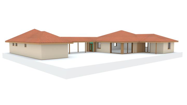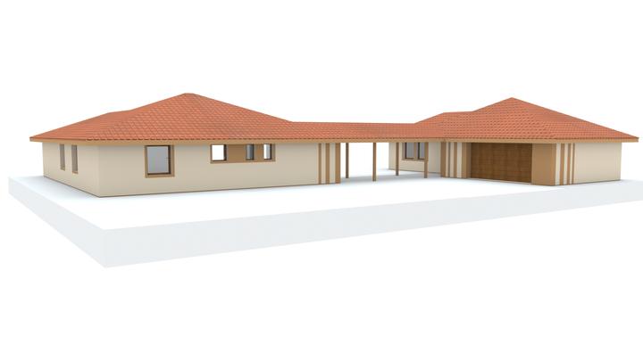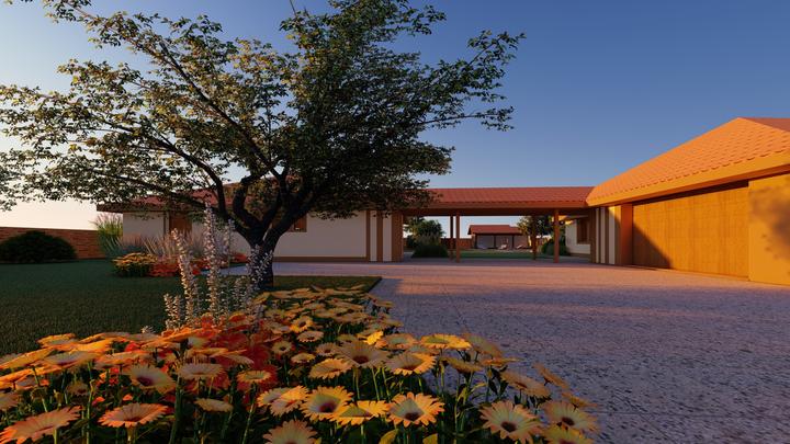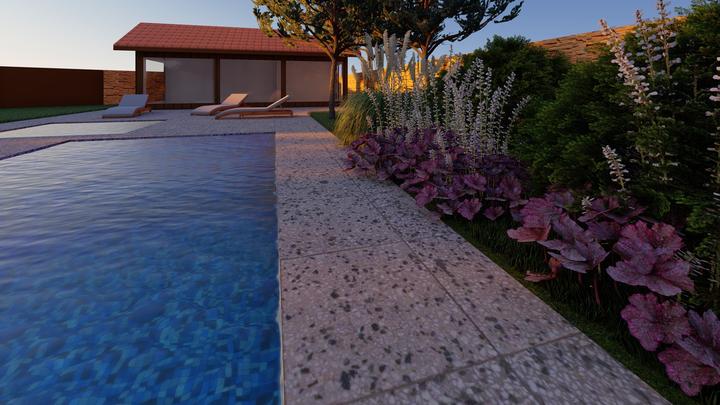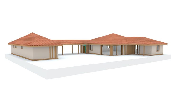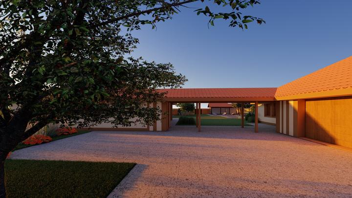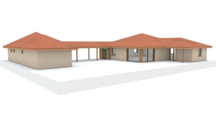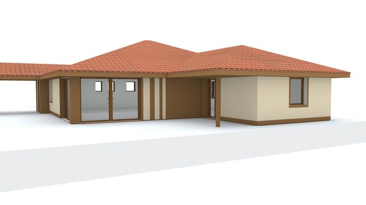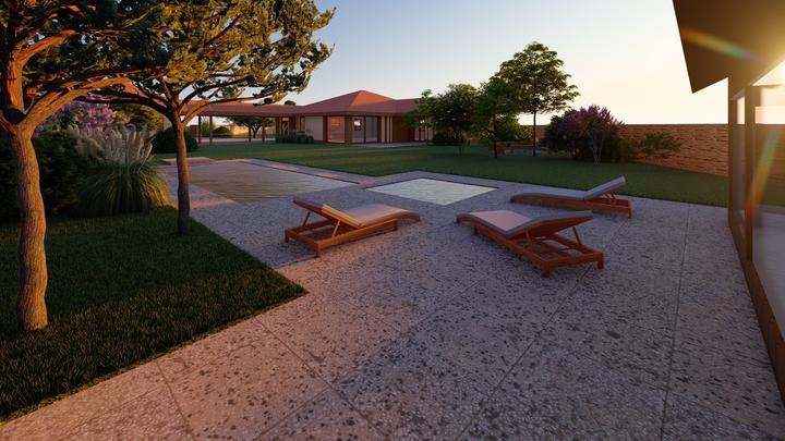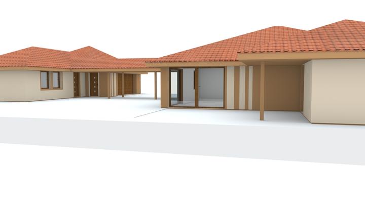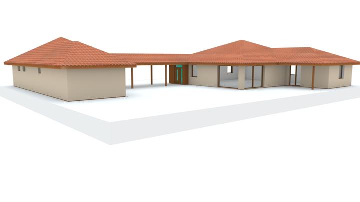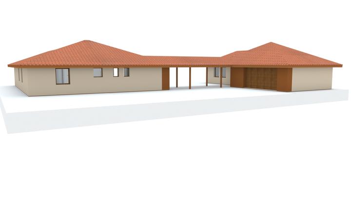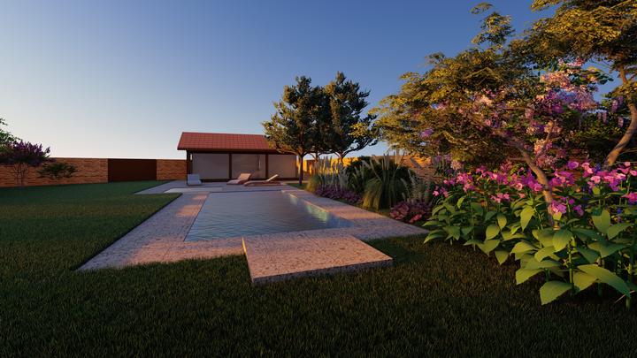 Návrh fasády rodinného domu, oplotenia a predbežné rozmiestnenie prvkov záhrade