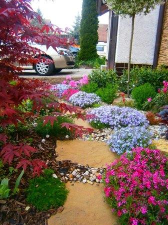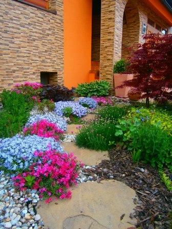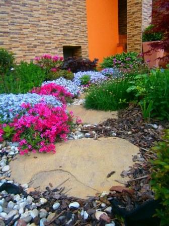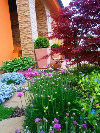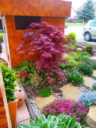 Fotky predzáhradky, ktorá bola realizovaná tento rok. Niektoré dreviny a trvalky sú pôvodné. Použila som tu recyklovaných motýlikov :) Sú ozdobou solitérnych kameňov.