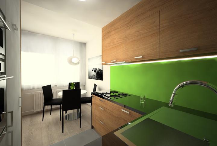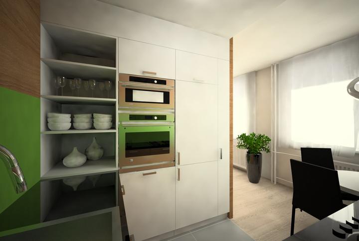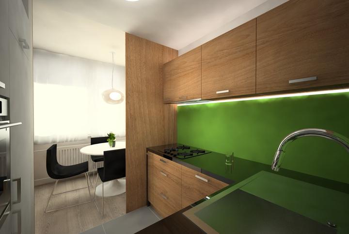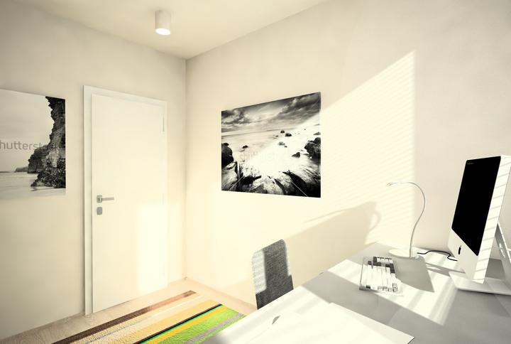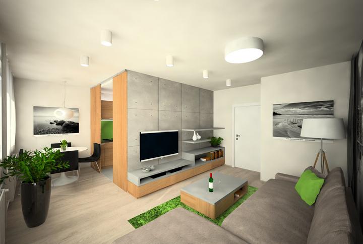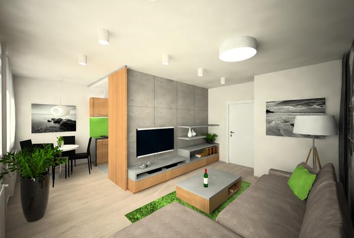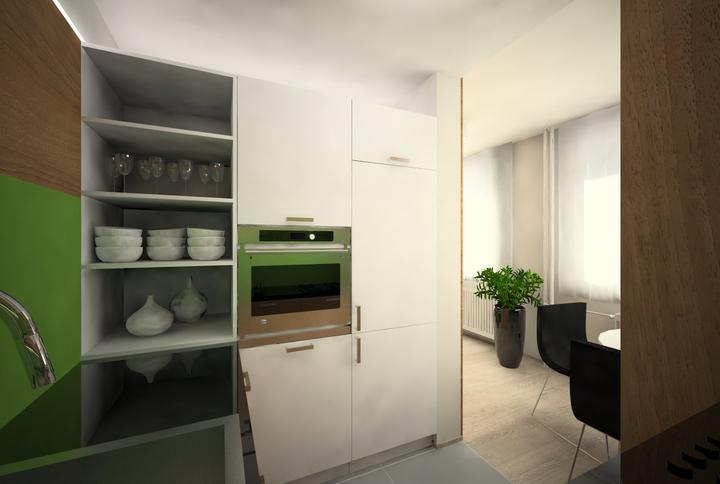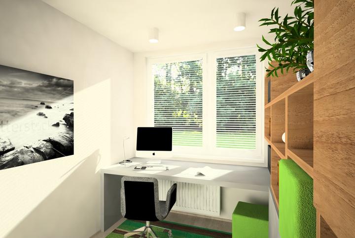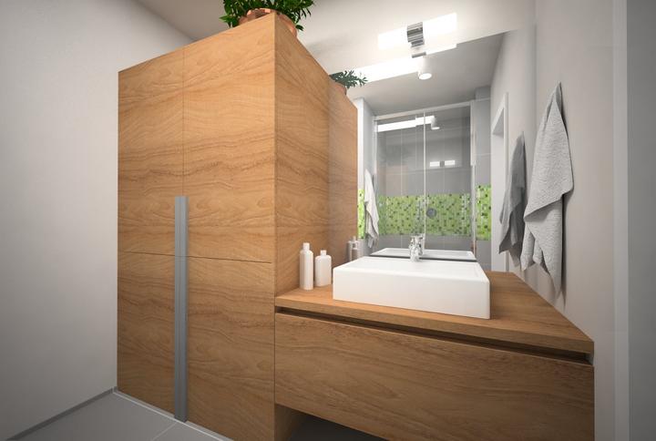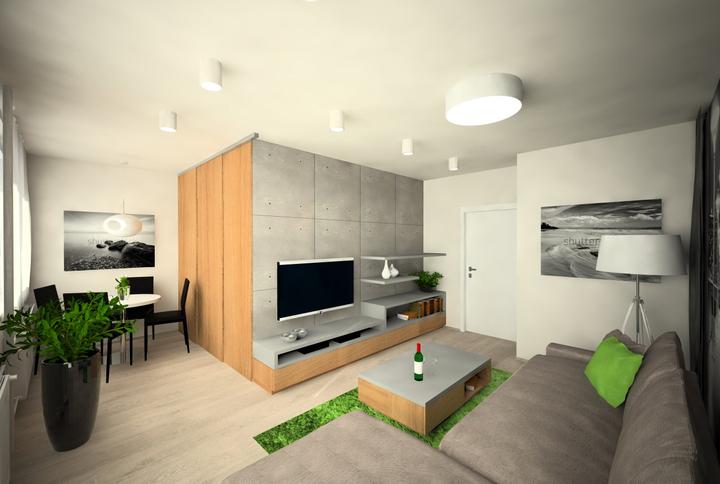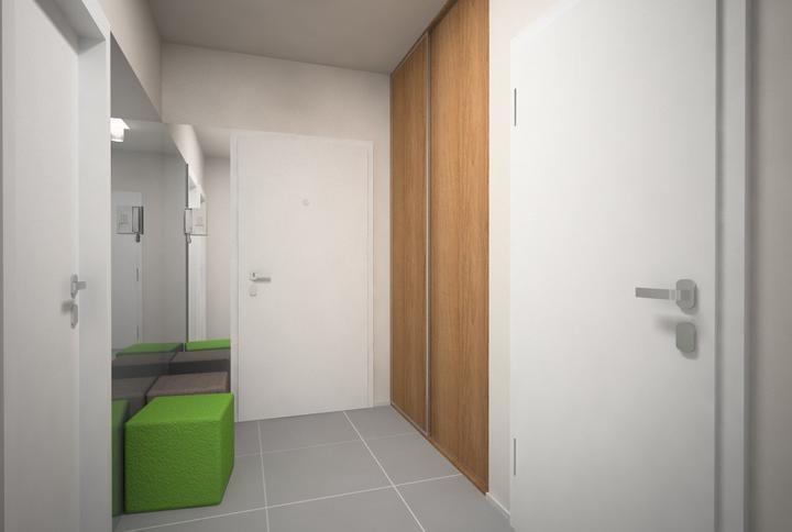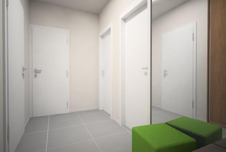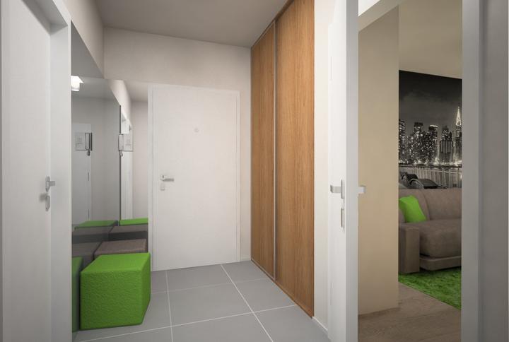 V návrhu trojizbového bytu sme zohľadňovali, že ide o byt pre mladého človeka. Urobili sme menšiu zmenu dispozície. Vďaka tomu sme dosiahli priestrannejšiu kúpeľňu a malú jedálenskú časť. Celý byt je ladený v neutrálnych tónoch v kombinácií s drevod…
