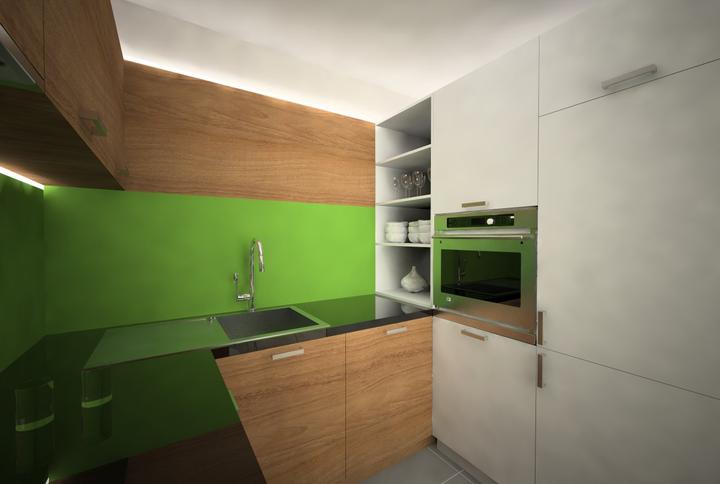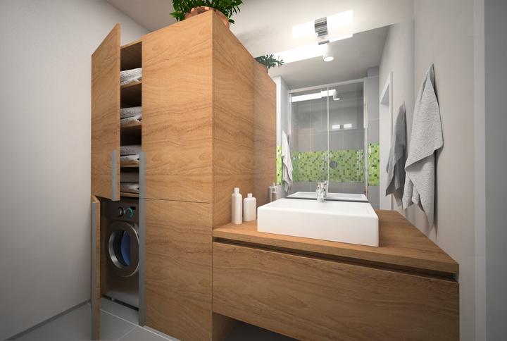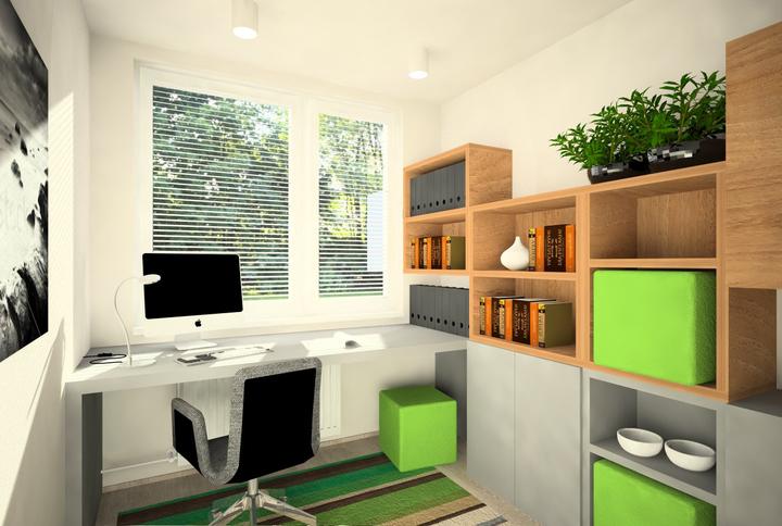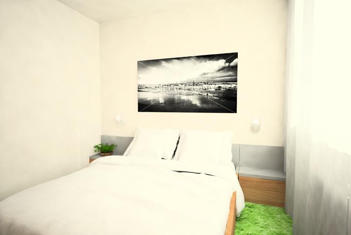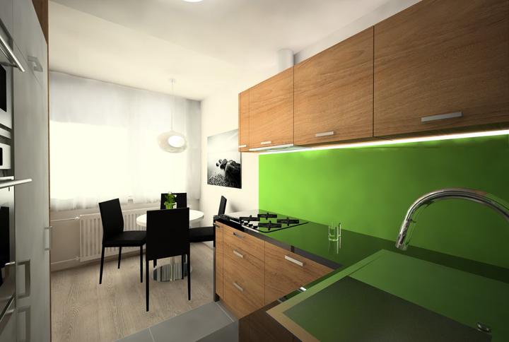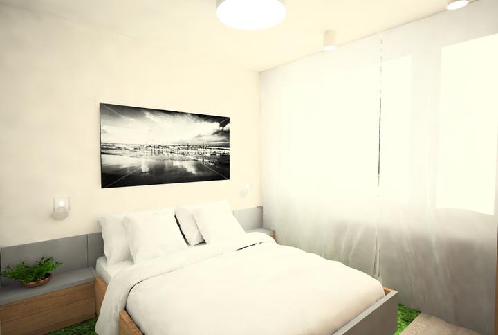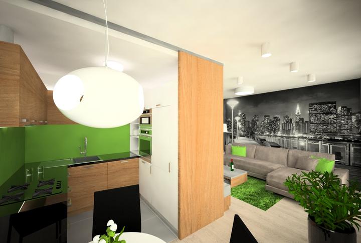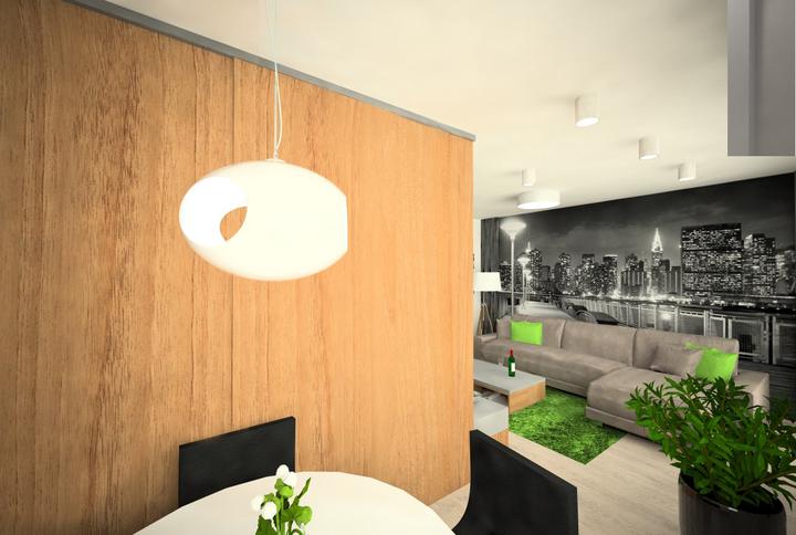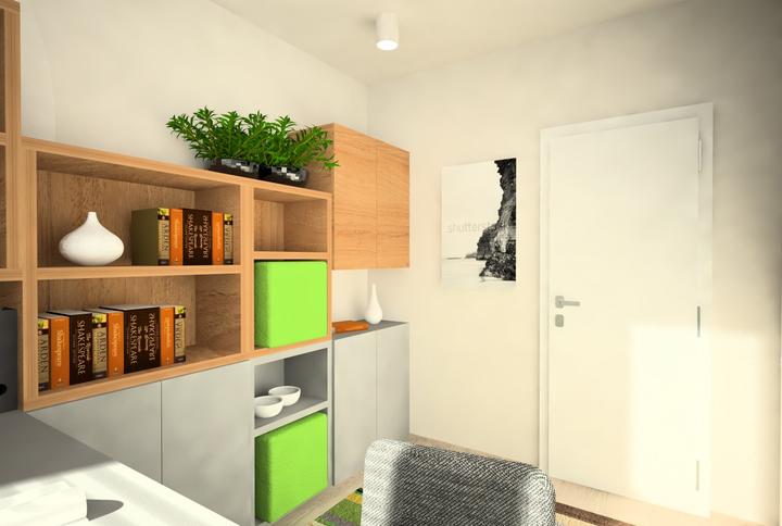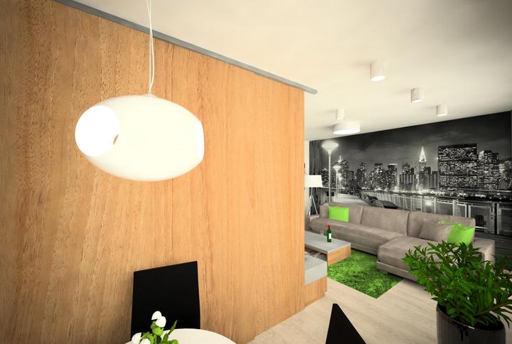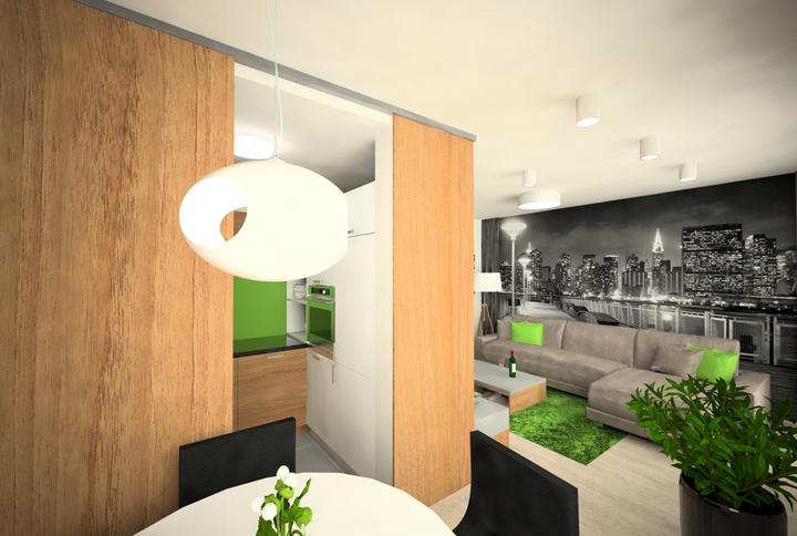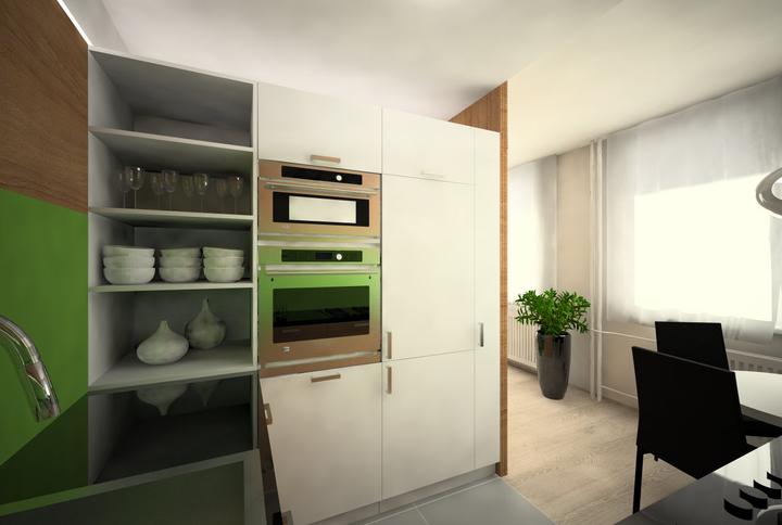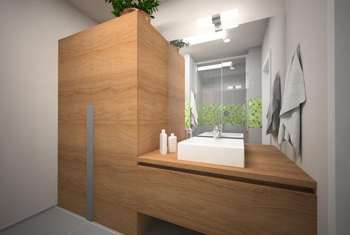 V návrhu trojizbového bytu sme zohľadňovali, že ide o byt pre mladého človeka. Urobili sme menšiu zmenu dispozície. Vďaka tomu sme dosiahli priestrannejšiu kúpeľňu a malú jedálenskú časť. Celý byt je ladený v neutrálnych tónoch v kombinácií s drevod…